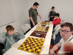 První jsem dohrál já, s panem Petrželkou se mi podařilo remizovat, ani jeden jsme v partii nic moc k výhře neviděli. Ostatní partie byly celkem stále vyrovnané, jen u Viléma Popela bylo po vzoru Tomáše Holáska už brzy jen málo kamenů k hraní, což ale není nic špatného. Podařilo se mu srovnat situaci s Šimonem Dlouhým, kdy měl chvíli o pěšce méně, a podařilo se zremizovat pěšcovou koncovku. Následně po nějaké době se podařilo panu Kokulovi vydolovat výhru ze situace s Martinem Dlouhým. Pan Nikolinko následně souhlasil s remízou s druhým úplným nováčkem – Tondou Palánem. Za oba skvělá premiéra do budoucna. Ondrovi Hejdovi se dnes nepovedlo mladšího Nikolinka udolat a i když zkoušel ještě hodně dlouho po Tondovi vydolovat vyrovnání pozic, podlehl.