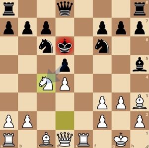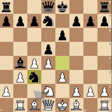 Maděra Stanislav-Pokorný Jan 1/2 Ze dvou možných soupeřů jsem dostal staršího a zkušenějšího, se kterým jsem měl pozitivní bilanci 2:0. Jenže není každý den posvícení, zahájení jsem vymýšlel dlouho, sice s malou výhodou, ale jedinou šanci na smeč jsem opět nevyužil, podobně jako v Lanškrouně. Přišla tady, ale po braní na d4 je nutné vidět další tah dopředu: