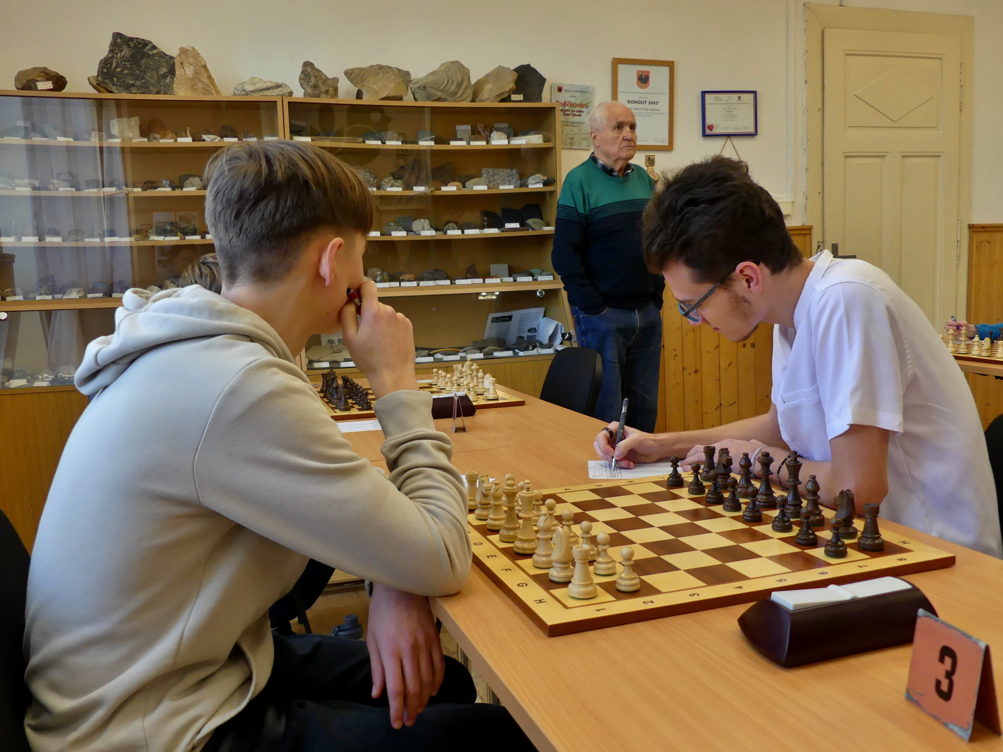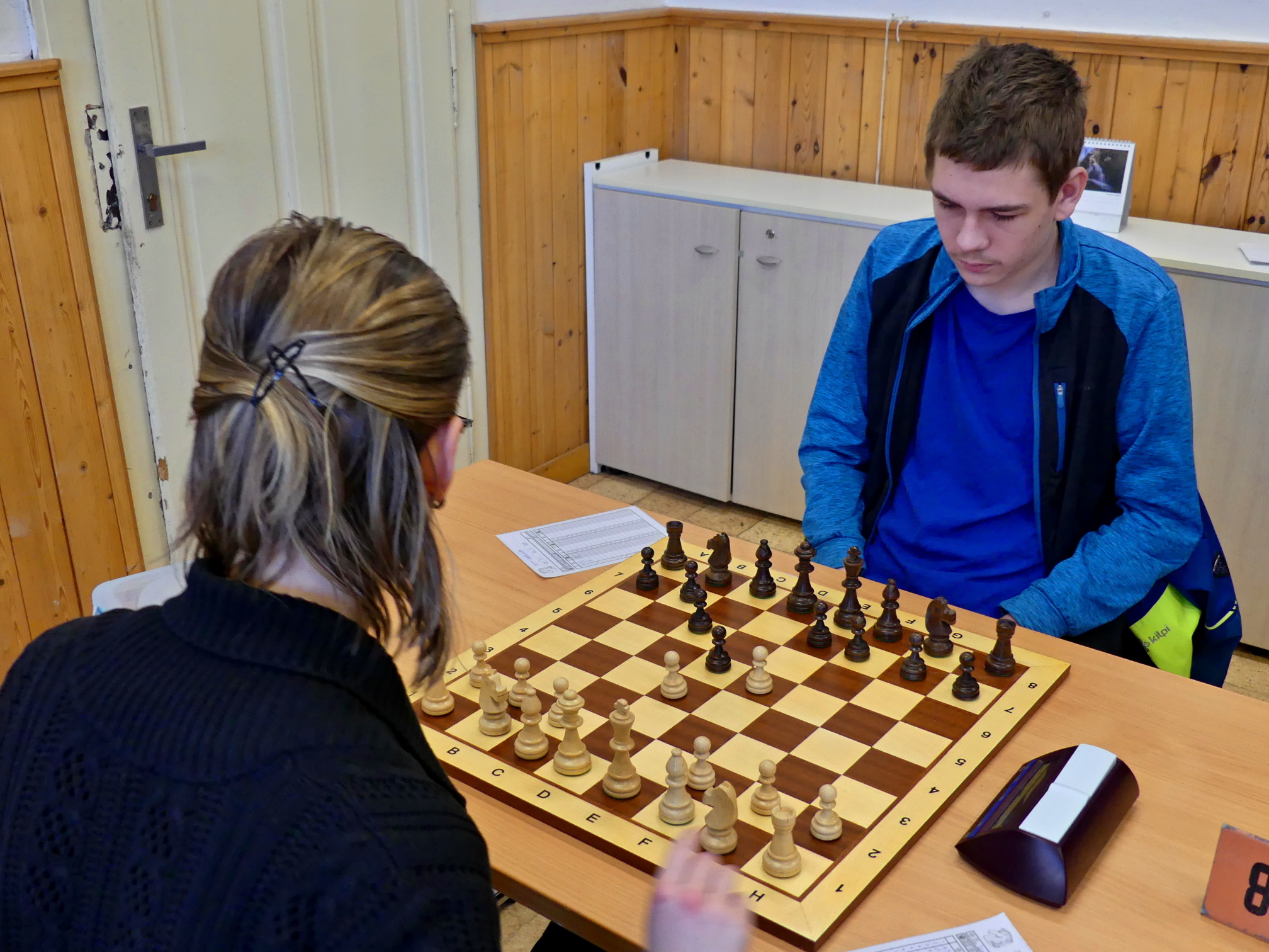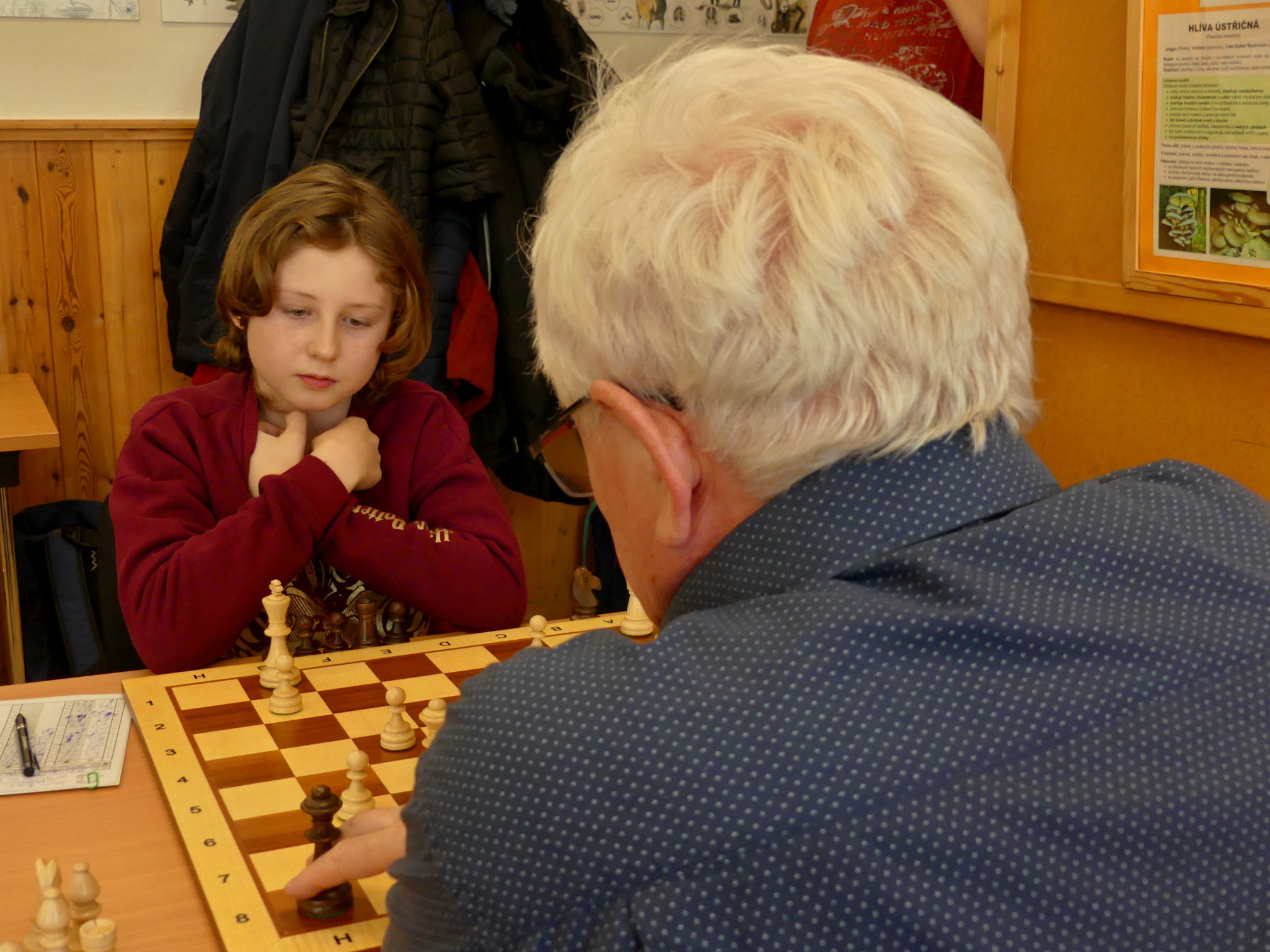 Pokorný Marian-Bednář Pavel 1:0 Aktuálně 5/8 a perfo přes 1800, to je hodně slušná úvodní sezona v KPII. Ale Majdu to ve Třebové baví a hraje s chutí. Dneska na něj zkušený soupeř zkusil po e4 b6, já bych to hrál s lehkými figurami, klukovi stačily na útok těžké a poměnil, co mohl. Černý asi mohl nápor ustát, ale vybral si špatný ústup králem a pak už přišel sběr hroznů. Na konci se rozjela pěšcová lavina, to bylo drtivé. Dost dobrý výkon!
