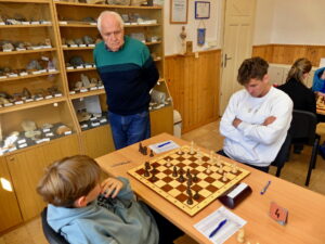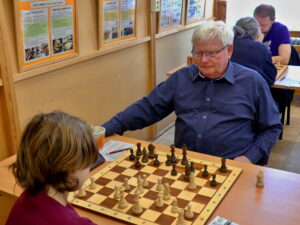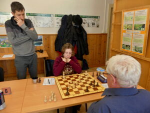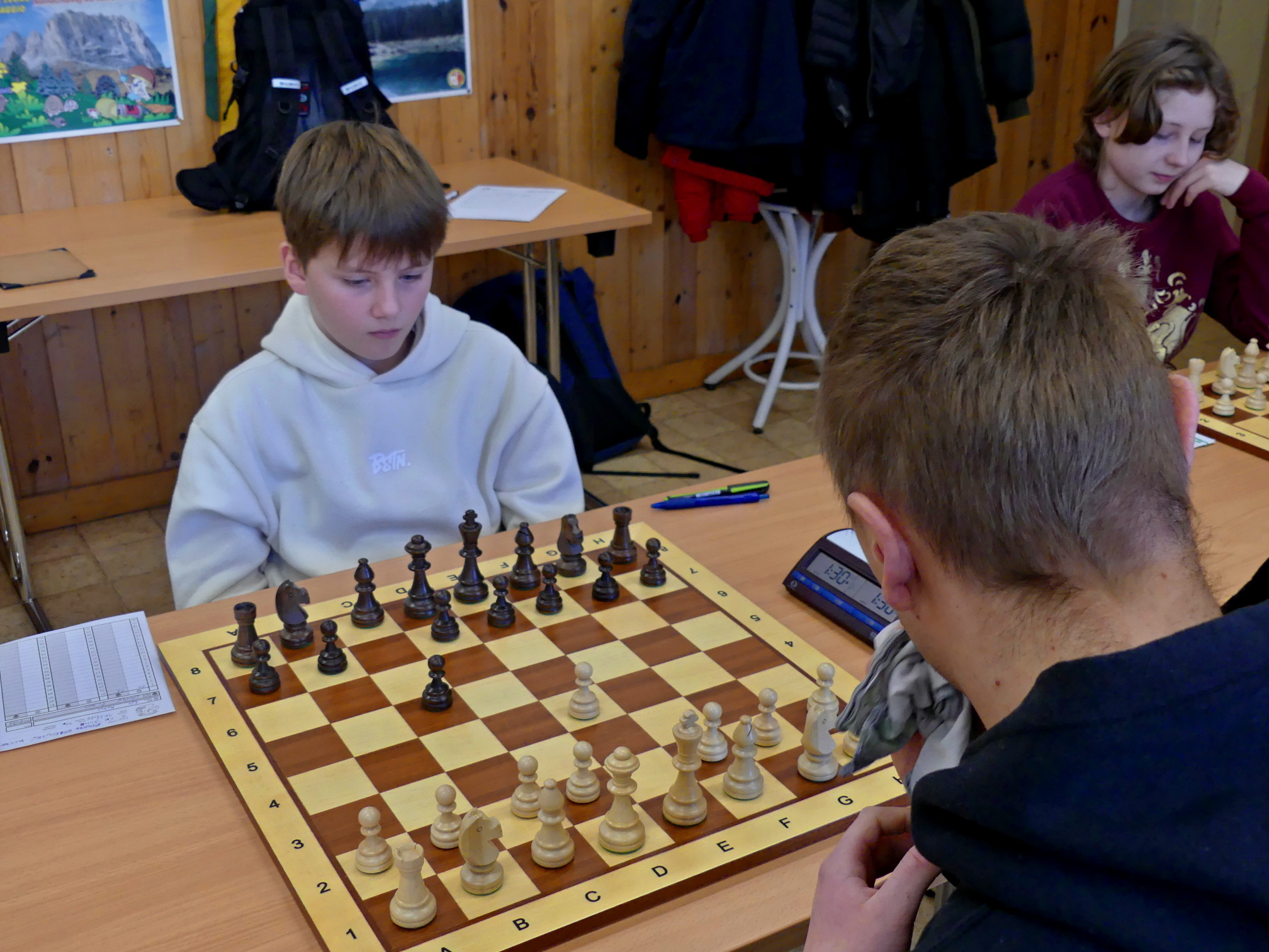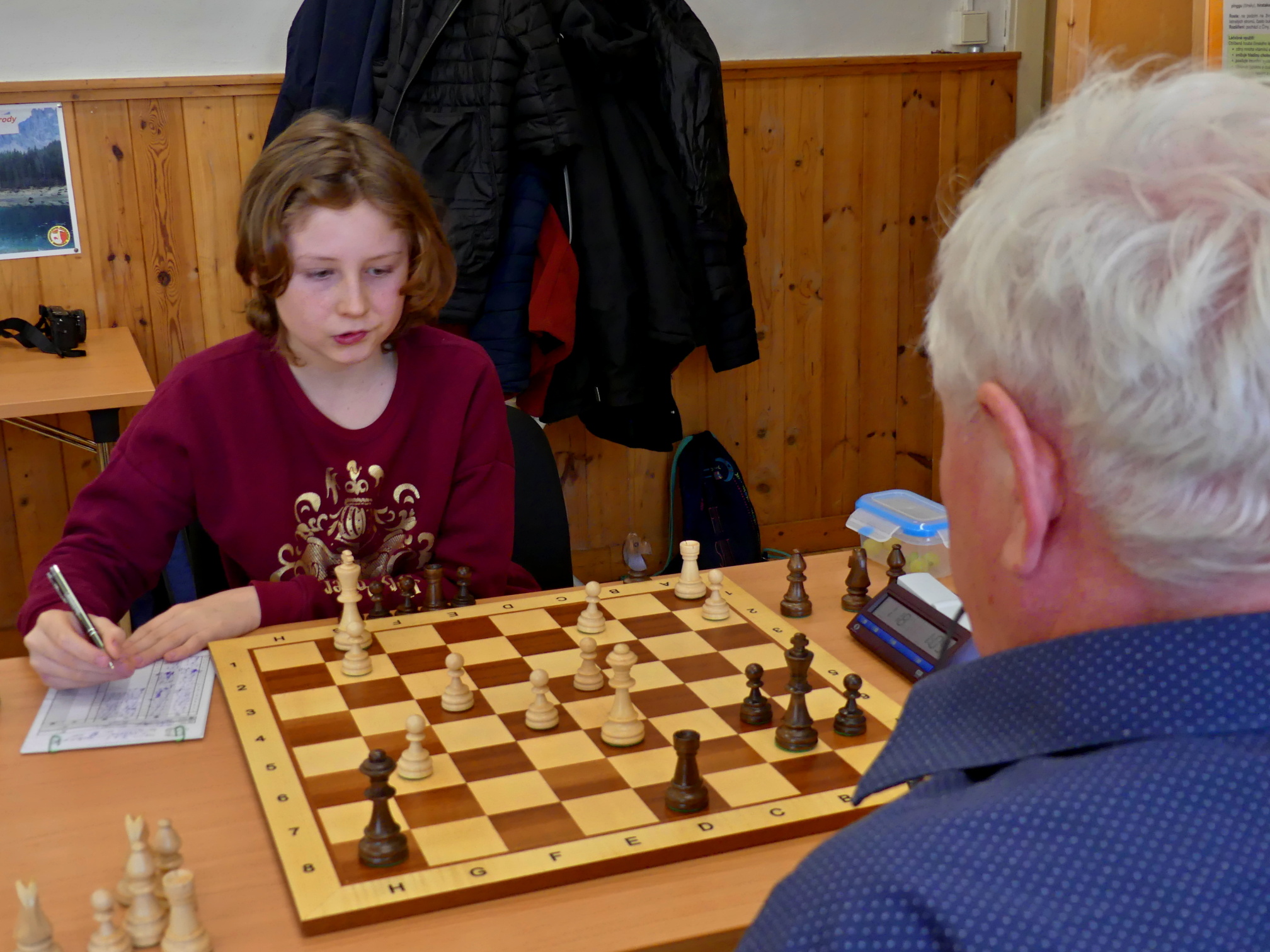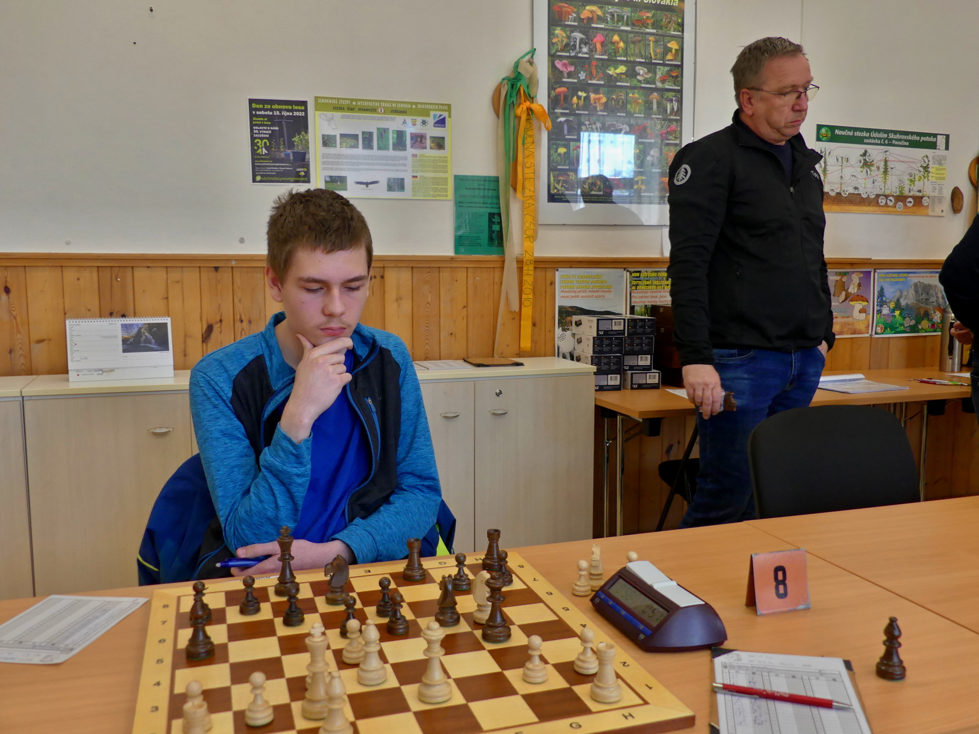 Pokorný Marian-Bednář Pavel 1:0 Aktuálně 5/8 a perfo přes 1800, to je hodně slušná úvodní sezona v KPII. Ale Majdu to ve Třebové baví a hraje s chutí. Dneska na něj zkušený soupeř zkusil po e4 b6, já bych to hrál s lehkými figurami, klukovi stačily na útok těžké a poměnil, co mohl. Černý asi mohl nápor ustát, ale vybral si špatný ústup králem a pak už přišel sběr hroznů. Na konci se rozjela pěšcová lavina, to bylo drtivé. Dost dobrý výkon!