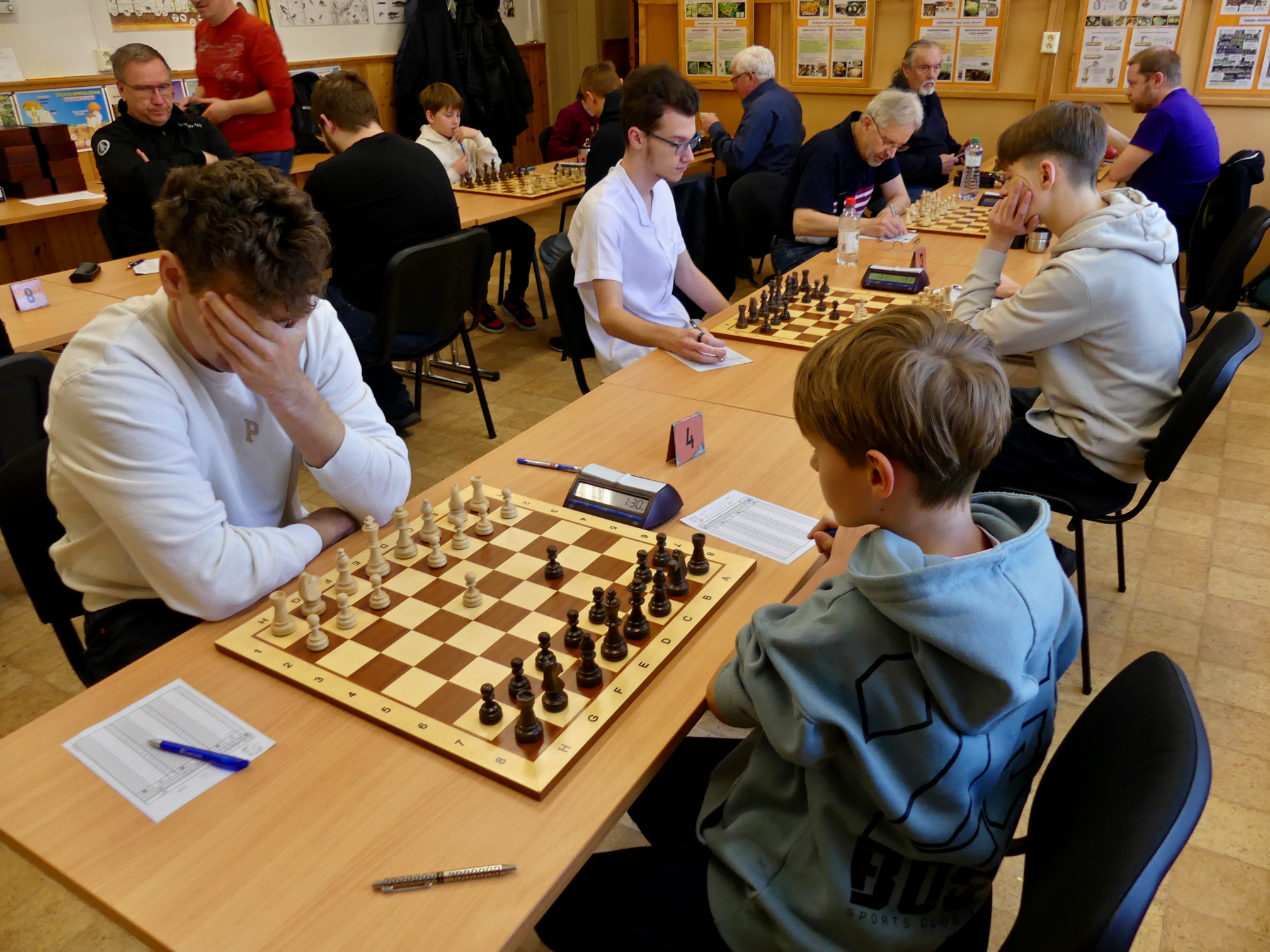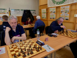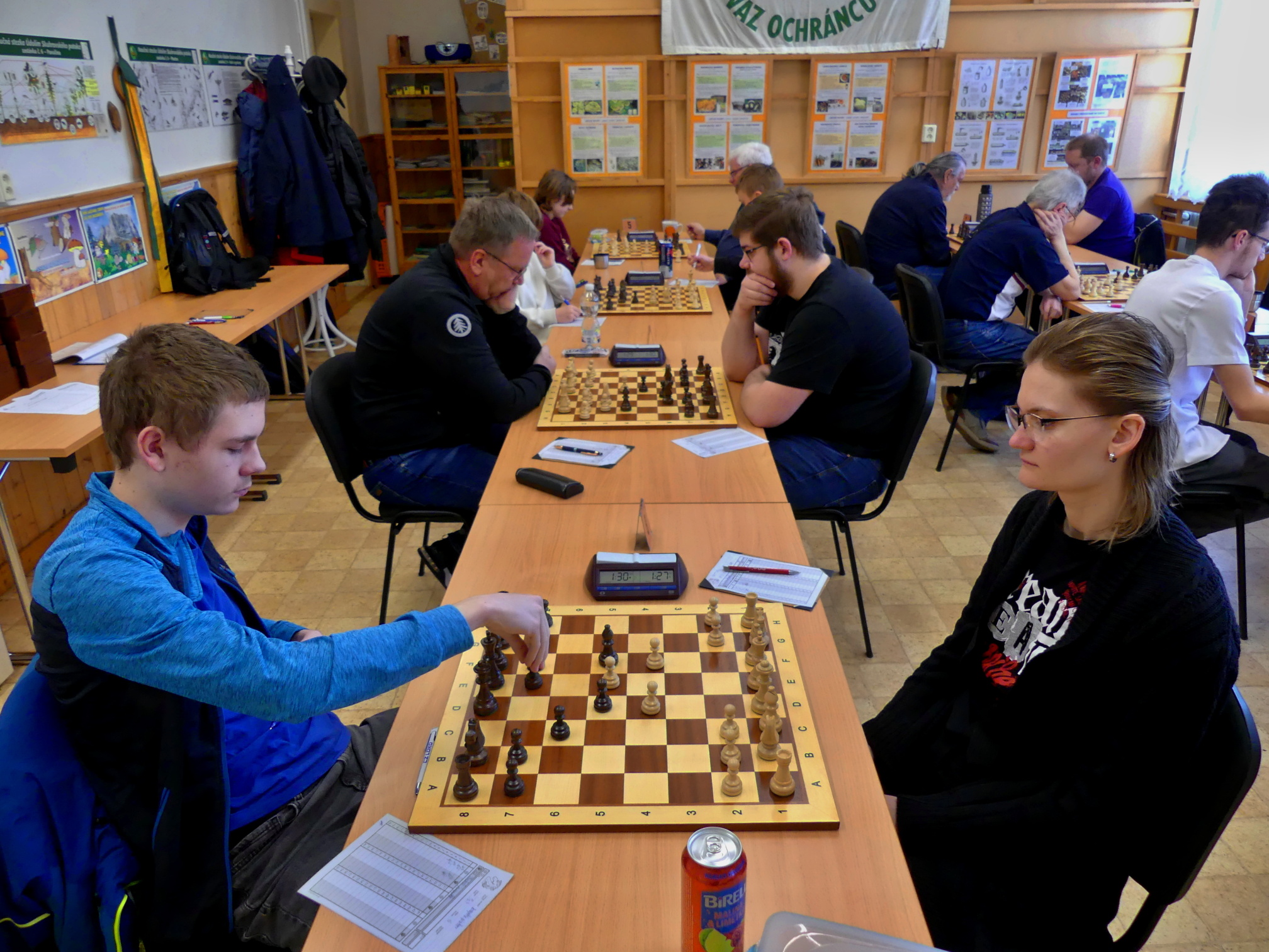 Již před sezonou ovšem kapitán Ivoš avizoval, že ochota některých pravidelně nastupovat jest proměnlivá, asi proto uvítal nás Oustecké 🙂 V předešlých kolech bylo omluvenek tu méně, tu o něco více… a 16. března jsme se překonali. Z první desítky dostupné toliko tři kusy, od 4. do 8. nikdo! Za Ivoše na jedničku Hurťák (OK, škoda bílých pro Pokyna), stoprocentní válec Vlastík taky nemůže pořád. Pro další absence už mám pochopení méně – mladí ve finále vyplavali hodně nahoru, kde mohli překvapit… ale taky nemuseli. Soupeř má kádr naopak vzácně vyrovnaný, vepředu nestor Milan Kotva, pak výrazně mladší v rozpětí 1750-1850.