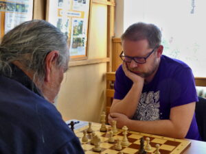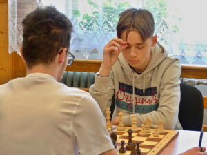 Marek Patrik-Vymazal Marek 0:1 Souboj mladých, Svitaváka jsem už dva roky zpátky bílými ve Francii marně lámal. Tady se hrálo totéž, ale náš junior zvolil zavřenou variantu. Osobně ji nedoporučuji – černý má jasný plán a bílý musí být pozičně precizní, anebo maximálně kreativní, aby se dopracoval k výhodě. Tady dopadl jako XY jiných – skončil v trochu horší koncovce, pak ještě pochmurnější, posléze prohrané věžovce. Černý se ani moc nenadřel, prostě „jen“ hrál dobře.