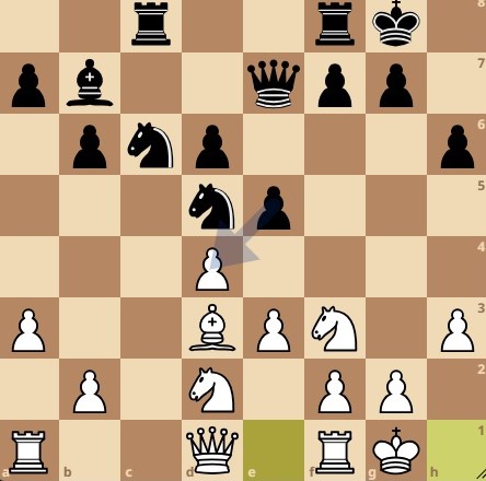 1. Hurt Lukáš-Kotva Milan 1:0 Na tenhle duel jsem se hodně moc těšil. Hurťák, ač ratingově výrazně silnější, s velmi negativní vzájemnou bilancí. V předzápasovém chatu psal cosi o Nemesis, ale já si říkal, že černá série jednou musí skončit. Ideálně teoreticky zdatného soka vyvést mimo vyšlapané cestičky a tam uplatnit ELO bodíky či výdrž. A co se stalo: 1.Jf3 s dalším b3, to bych pochválil, černý úplně normálně do centra. Luky blical (což už bych si rozmyslel), po „nevinné“ výměně na b1 si vůbec nezkontroloval hrozby a po dalších vynucených tazích přistál v následující pozici: