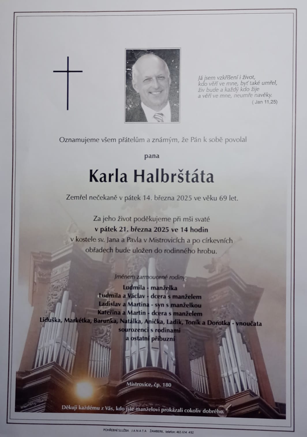 V pátek 14. března ve věku 69 let zemřel zakládající člen a předseda ŠO Mistrovice Karel Halbrštát. Neúnavný propagátor šachové hry starající se o růst šachových nadějí. Velký organizátor krajských mládežnických turnajů a dvou memoriálů pro dospělé.