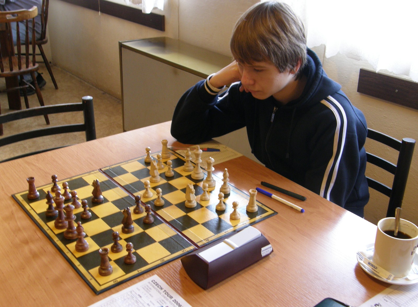 Předsevzetí naplňuje nejlépe Jarda Volf, který vyhrává v dosti kuriózní miniaturce s mladým Lukášem Tomešem. Ten se musel vypořádat, jako již desítky Volfíkových soupeřů, s hodně okrajovou variantou sicilky. Opticky dobře vypadající tah 6.Je4 už zasluhuje otazník, strašlivý plundr 8.a3 otazníků čtyřicet. Přišlo efektní braní dámou na d4 a okamžitá rezignace – 1:0 vedeme a začátek víc než luxusní.