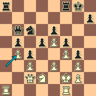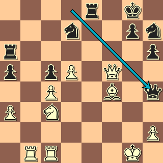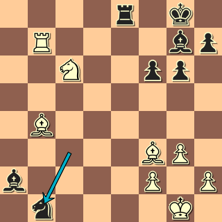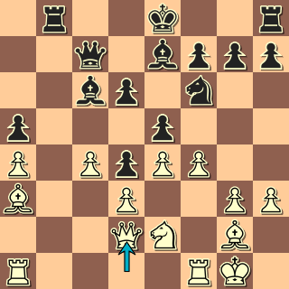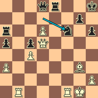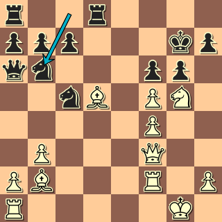 To je skoro zugzwang, bílé figury nemají jediný tah! Hrozí b4 s chycením dámy. 31. d5 Dxd5 32. Dd4 Jc5 33. Ke1 Dxd4 34. exd4 Je4 0:1