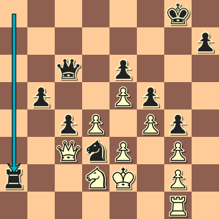 Až sem dělal černý nejpřesnější tahy a bílý si pořád nemohl jezdce sebrat. Ale teď už může, ne? 33. Sxb1? A černý nemůže 33. … Vxc6?? pro 34. Va8+, poslední řada je slabá. Jenže … Naleznete repliku černého? 33. … Sh6?? Partii zachraňovalo 33. … Sd5!, protože slabou první řadu má najednou i bílý. Bez figury hrát černý ale nemůže, byť to zkoušel. 1:0