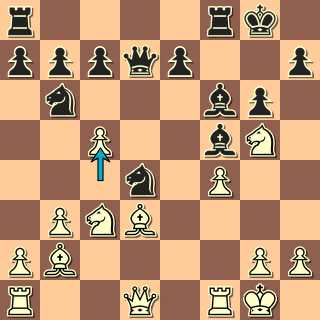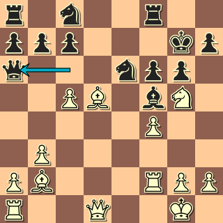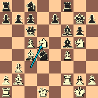 Tady se bohužel chytil náš hráč. Zatímco 11. … Sxd2+ nebo De7 bylo ještě hratelné, po 11. … Sa5? 12. b4! je zle. Nepomohlo ani 12. … b5 13. Jxe4 bxc4 14. bxa5, dva střelci si ve zbytku partie dělali, co chtěli. 1:0