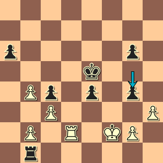 Věžovka mi připadala vyrovnaná, pěšcové slabiny černého jsou sice lákavé, ale jak se na ně dostat? Pustit pb2 se mi nechtělo. Po 46. h4 jsem tedy i s ohledem na stav zápasu nabídl remízu. Soupeř mě ale zkusil vytrestat postupem 46. … g3+? 47. Kxg3 e3. Jenže 48. Vd8 Ke4 49. Vd4+! Ke5 50. Kf3 všechno kryje, bílému zůstane pěšec, černému slabiny. Po oboustranných nepřesnostech jsem pak věžovku vyhrál. 1:0