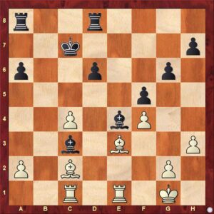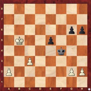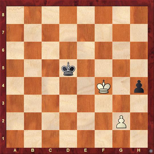 Po 1. a4 e4 to vypadá, že pěšcové závody vyhraje černý, ale po 2. Kc4! se ukázalo, že černý musí ztratit dvě tempa králem (Kf4-e3-d2). Dámskou koncovku ale Marian vypustil do remízy.