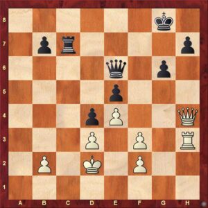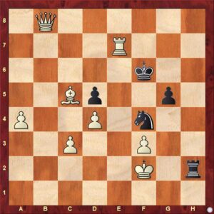Černými správně našla 1. … Jg4+!, bílý král je přetížen, obě věže neudrží. S kvalitou navíc si pak poradila zcela rutinérsky.