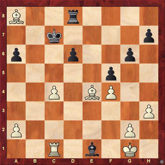 Soupeř chyboval tahem Sg7-c3 a Honza tu měl vyhrát po 1. Sxe4! Zápletka 1. … Sxe1 2. Sxa8 totiž vede vždy k pozici, kdy bílému zůstane figura navíc. Tah 2. Sxa8 taky skutečně přišel, jenže … špatným střelcem: 2. Se3xa8?? Pozice se dvěma bělopoláky je skutečně nevídaná: