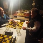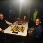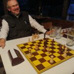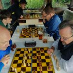 Na čepu byl Šerák, v udírně klobásy, na talířích buchty a na stolech šachy. Jestli dobře počítám, bylo nás tam deset šachistů: Martin a Saša Dudlovi, já a Vojta, Soňa Leksová, Vašek Grundman, Karel Mitura, Vlasta Hrobař, David Kameník, Filip Kokula. Někteří jen na hodinku dvě, někteří přes osm hodin až do tmy. Víceméně bez organizace se blicalo, zápisy partií se nedochovaly.