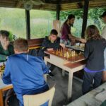 Novinkou v ústeckém šachovém dění se stalo posezení, které zorganizoval Martin Dudla ve svém zahradním altánu. Po rozsáhlém průzkumu zájmu vykrystalizoval dnešní termín, sice nepřišli všichni, kdo účast avizovali, ale zase přišel i někdo nepřihlášený, občas i pršelo, ale na to je Vašek už zvyklý.
