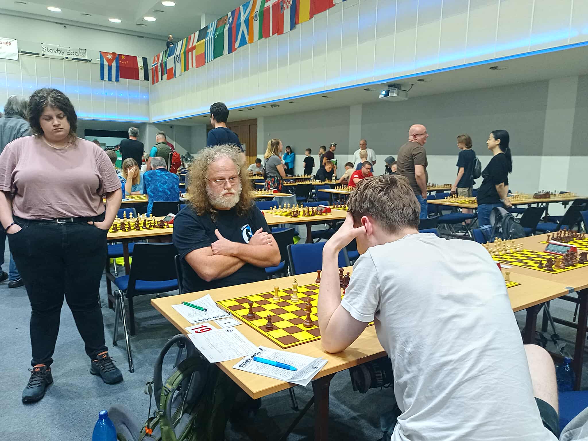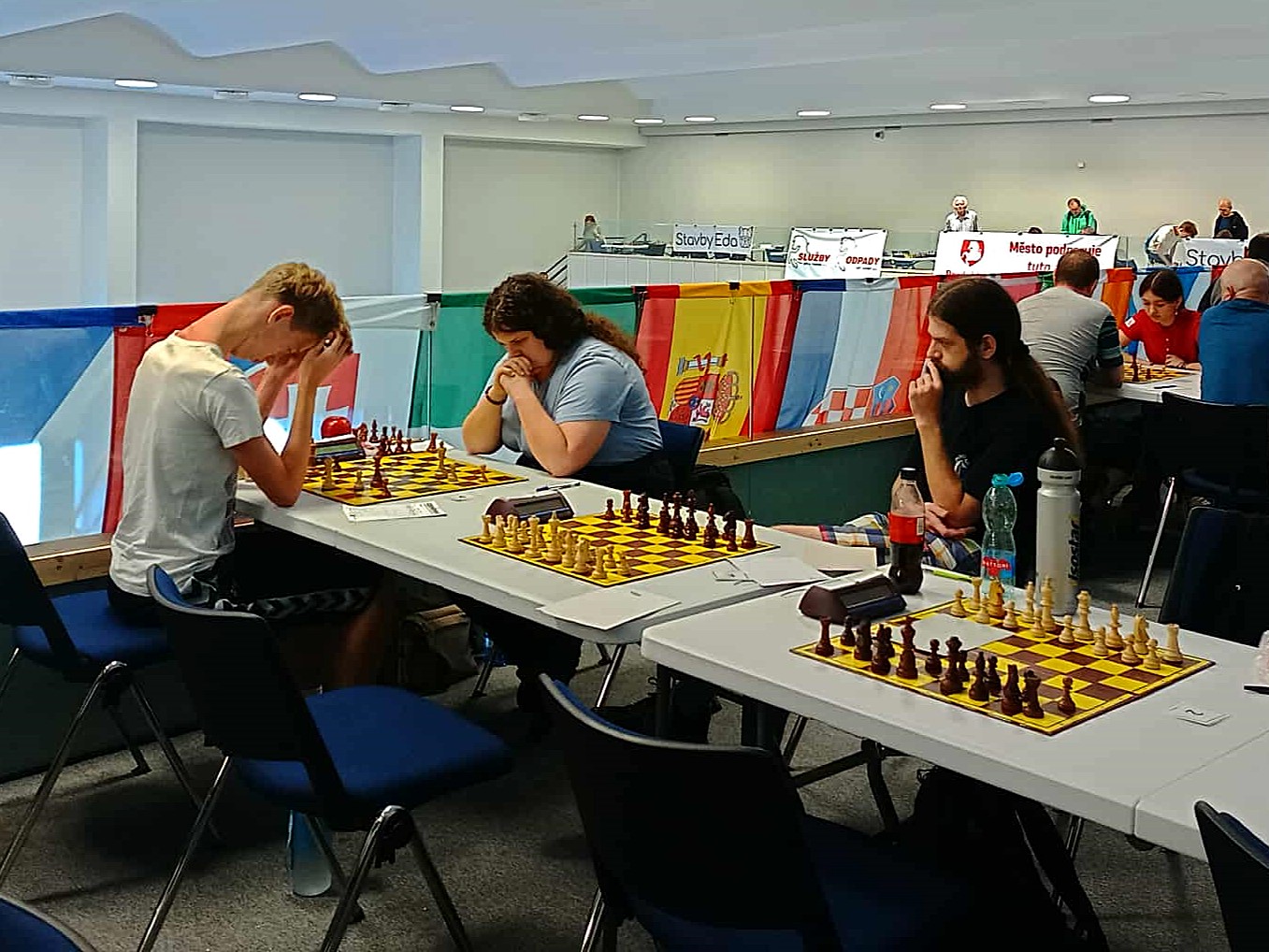 Soňa dnes přidala 1,5 bodu včetně půlky s Třasákovou, celkově 4/7, takže je zhruba na svém. Její tým hrál víc vepředu než my, ale nakonec skončil za námi na 111. místě.