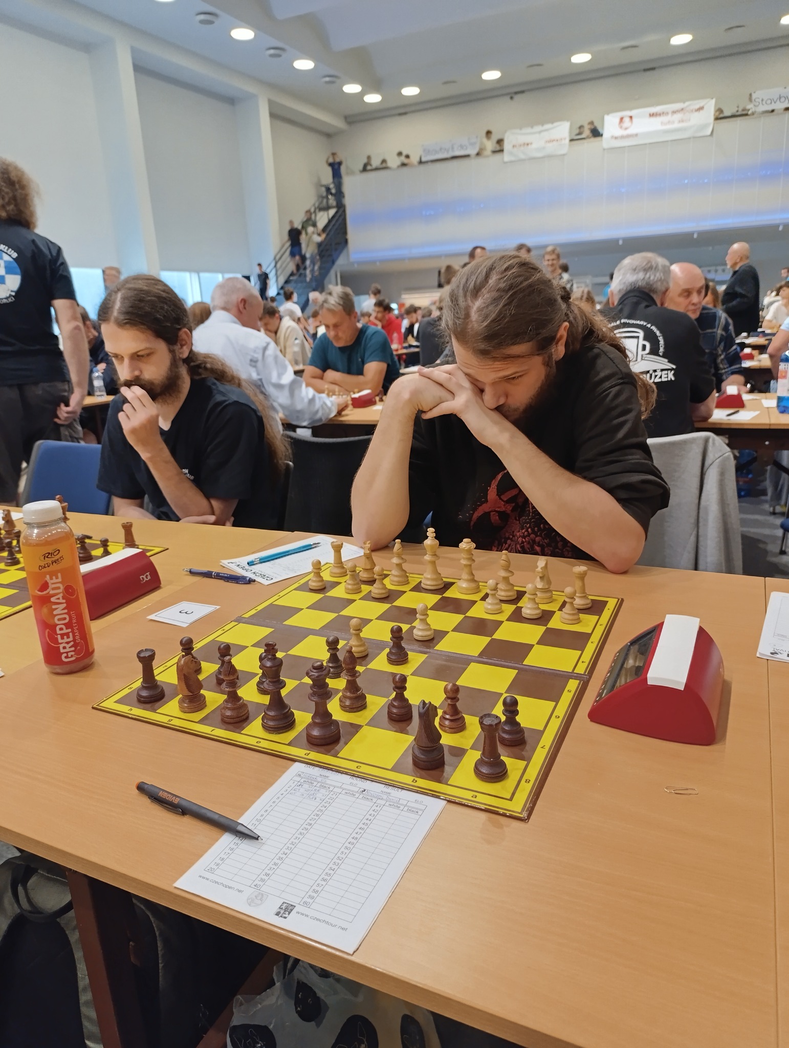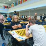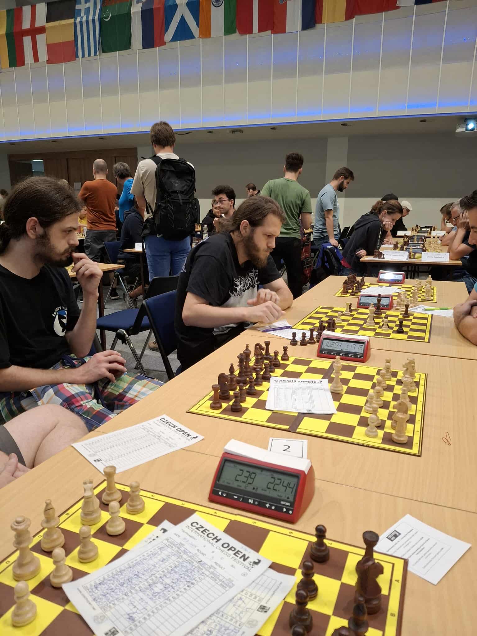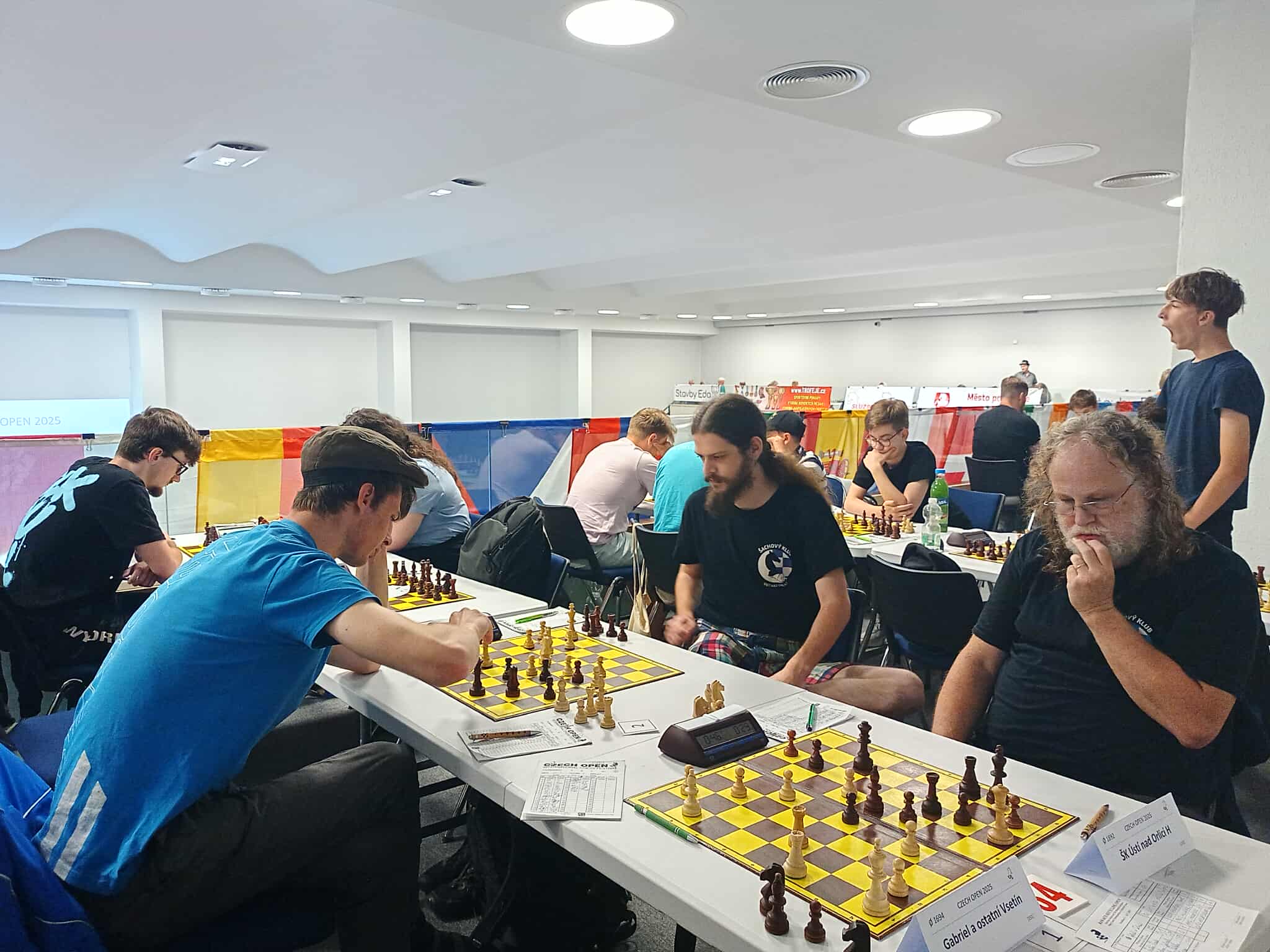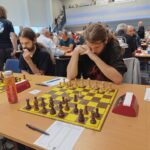 Ráno jsme hráli s týmem Gabriel a ostatní Vsetín, junioři s celkem nízkými ely, ale už víme, že to mnoho neznamená. Do vedení nás dostal Vítek, který si Marshalla černými užil a soupeře zcela rozdrtil, i když to zase nebylo zcela bez chyby. Druhý bod jsem přidal já v podivné partii, soupeř s elem 1615 )druhý nejnižší rating z týmu) mi prvních šestnáct tahů proti mému ježkovi odblical a stál velice slušně, i nadále mi potom byl důstojným soupeřem, i když jsem se dostal k více než dostatečné protihře. Prostě úroveň kolem 2000 – a ve 30. tahu najednou blundr, který znamenal okamžitý konec. Dnešní doba přináší fenomén hráčů vzešlých ze světa online hraní a streamů, kteří za desku usedají jen vzácně. Vojta soupeře vyseděl, ve svém Rétiho dvojdomku hrál na výdrž, odmítl půlku, přitlačil na královském křídle, získal nějakého pěšce, ale musel ještě dost počítat, byly tam dámy a čtyři koně. Verunka měla ratingově nejsilnějšího soupeře (1743), měla více ze hry, mířila do koncovky s pěšcem víc, ale pak nechala soupeři brutálně silnou dvojici střelců, která dobyla pěšce zpátky, naštěstí přešla partie do nestejnopoláků a tam už to byla úplná remíza. 3,5:0,5 pro nás.
