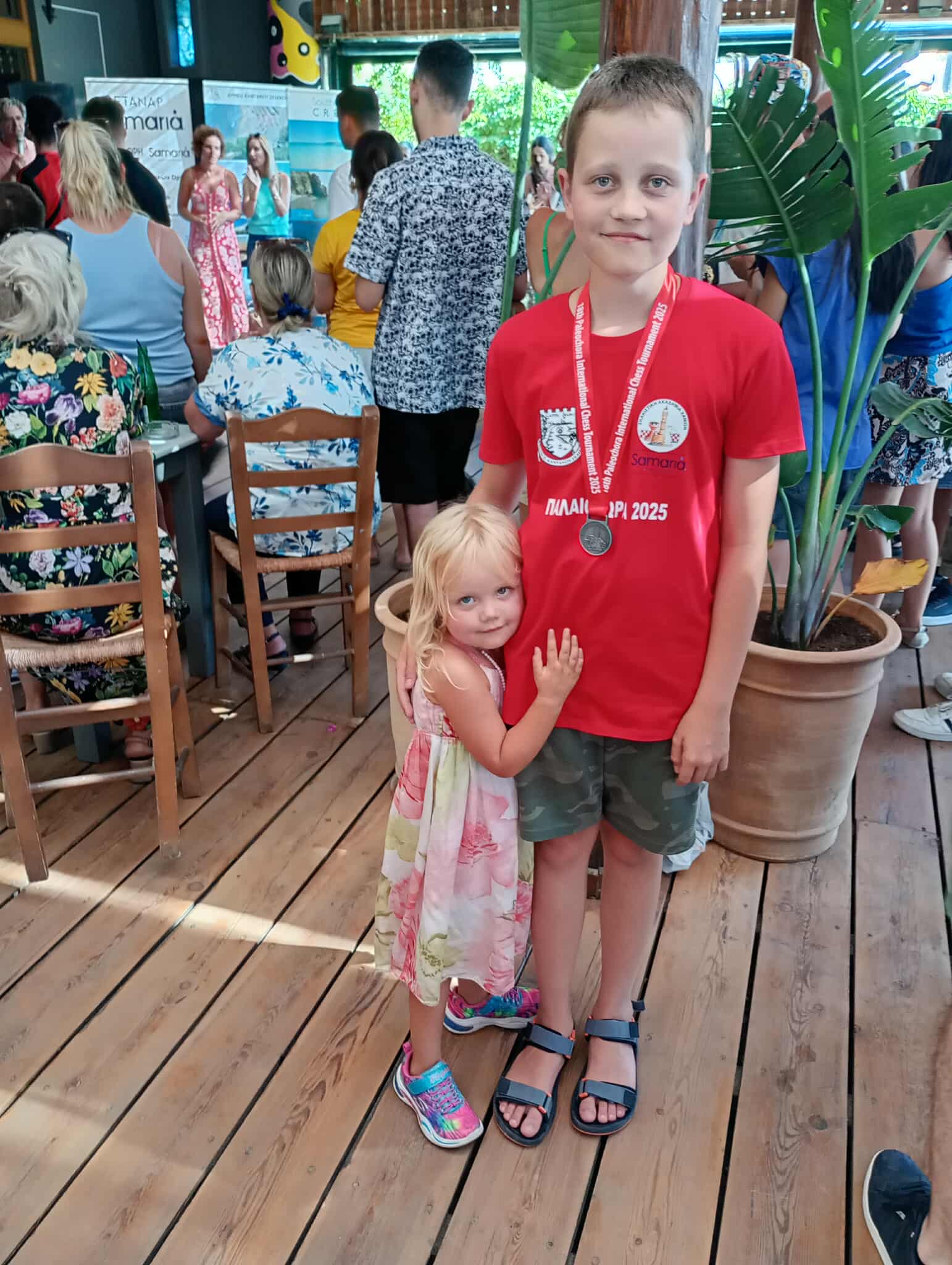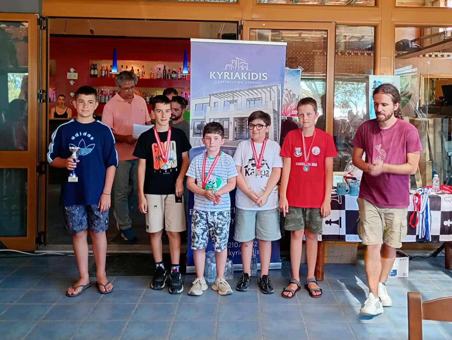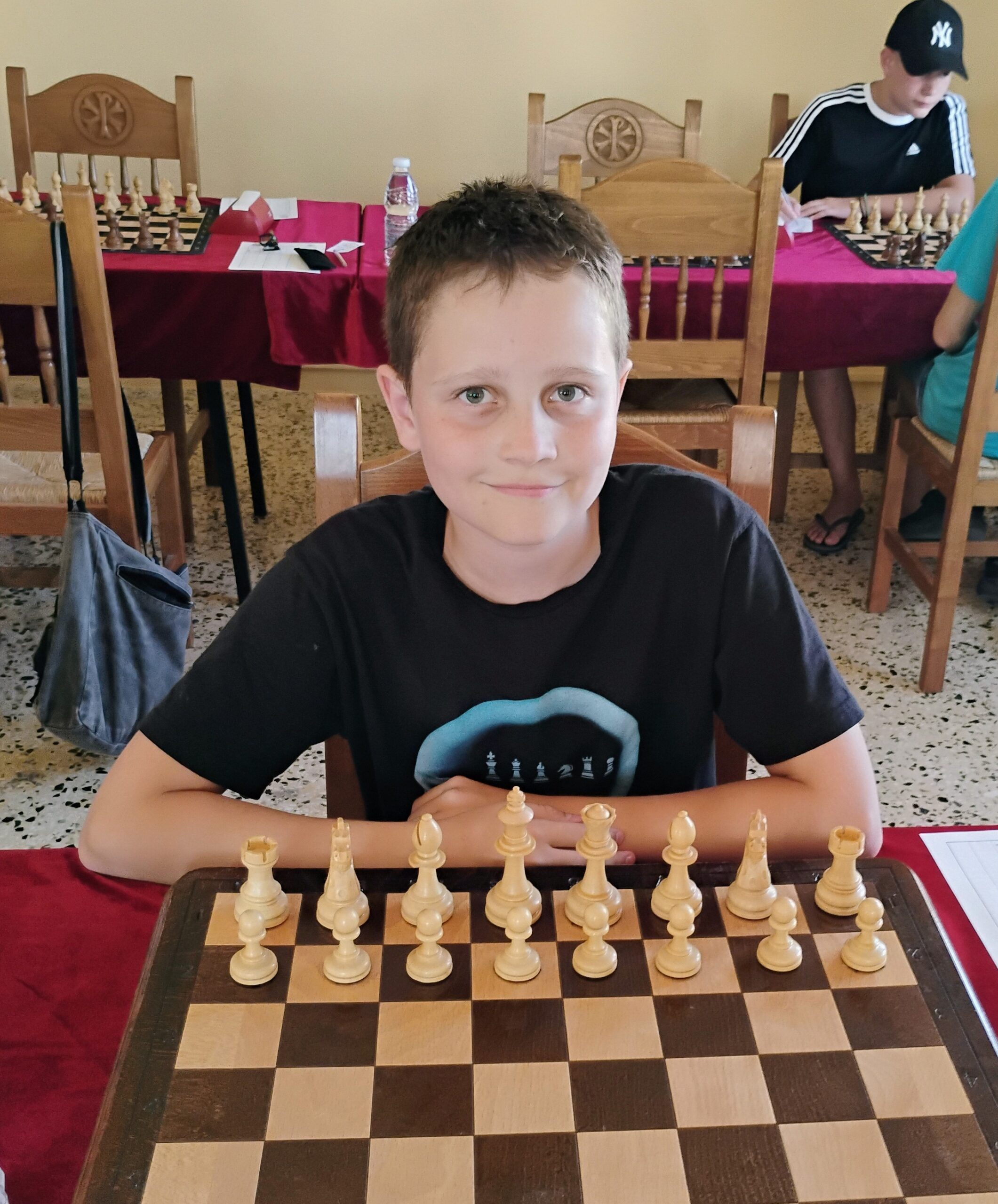 Několika fotkami a partiovou ukázkou (díky za informace z místa) se vracíme k účasti Petra Svobody na B turnaji v řecké Paleochoře. Dvěma výhrami v závěrečných kolech se posunul na konečné 23. místo (6/9), 3. v kategorii do 12 let.