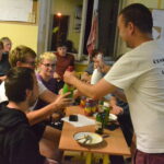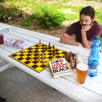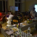 Rozbory nedávám, účastnili jsme se totiž tradičního společenského večera pro ubytované se steaky a kvízem Honzy Fialy. Ten byl zhruba stejný jako v minulých letech, něco ze šachových vědomostí i úplné ptákoviny. Naši pětici doplnil Eda Doležal a překvapivě jsme po dramatickém přetahování s týmem Paka Trio vyhráli! (Nemocné kachny, to jsme my, i když nevím proč.) Ve které reklamě skončila partie jaderným výbuchem? Který africký sudokopytník dal jméno kurióznímu zahájení? A které sloveso vyjadřující tlak na sypký materiál je obsaženo v příjmení uzbeckého velmistra?