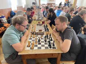 Turnaj nabitý, ELO ratingy po u mnohých značně zkreslující… s výjimkou nejvýše nasazených. První čtyři titulovaní hráči se také v devítikolovém klání srovnali pěkně za sebou a my ostatní se kolem nich točili jak na orloji. Stylem start-cíl to pojal vítěz a jediný velmistr startovní listiny Honza Bernášek (8/9), o půlku míň měl druhý Martin Šklíba, 7/9 zvládli třetí Marian Sabol a čtvrtý Rudolf Jun.