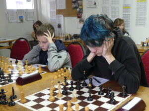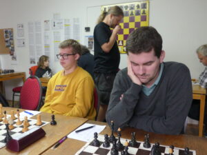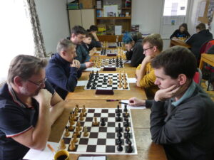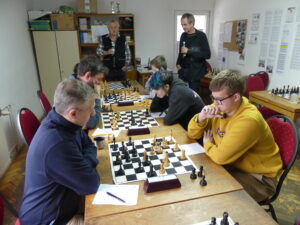 My to máme trochu jinak. Vepředu dvě těžké váhy a jedna polotěžká (hehe)… a pak záplava mladých, kteří by měli rating minimálně obhájit, ideálně povýšit. Prvního soupeře jsme se ale rozhodli zmást/vykolejit z přípravy/rozesmát, anžto se Vlasta i Kuba s předstihem omluvili. Pěkně děkuju 🙂 Pak už v pořadí 3-10 beze ztrát, k první vážné za družstva usedá Jožka Chmelař, jenž je poctěn úlohou řidiče stejně jako Tom Kodytek. Jelikož velím, trasuji nejen cestu, ale také nabádám spoluhráče k přípravě, cvakání diagrámků (neb speciálně taktika na úvod selhává), vhodnou rozcvičkou jest i čtvrteční oddílák, na který jsem se ale sám nedostavil.