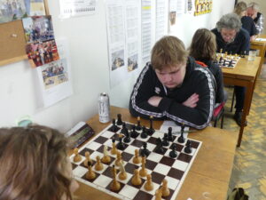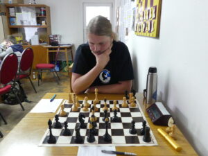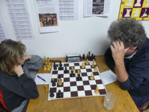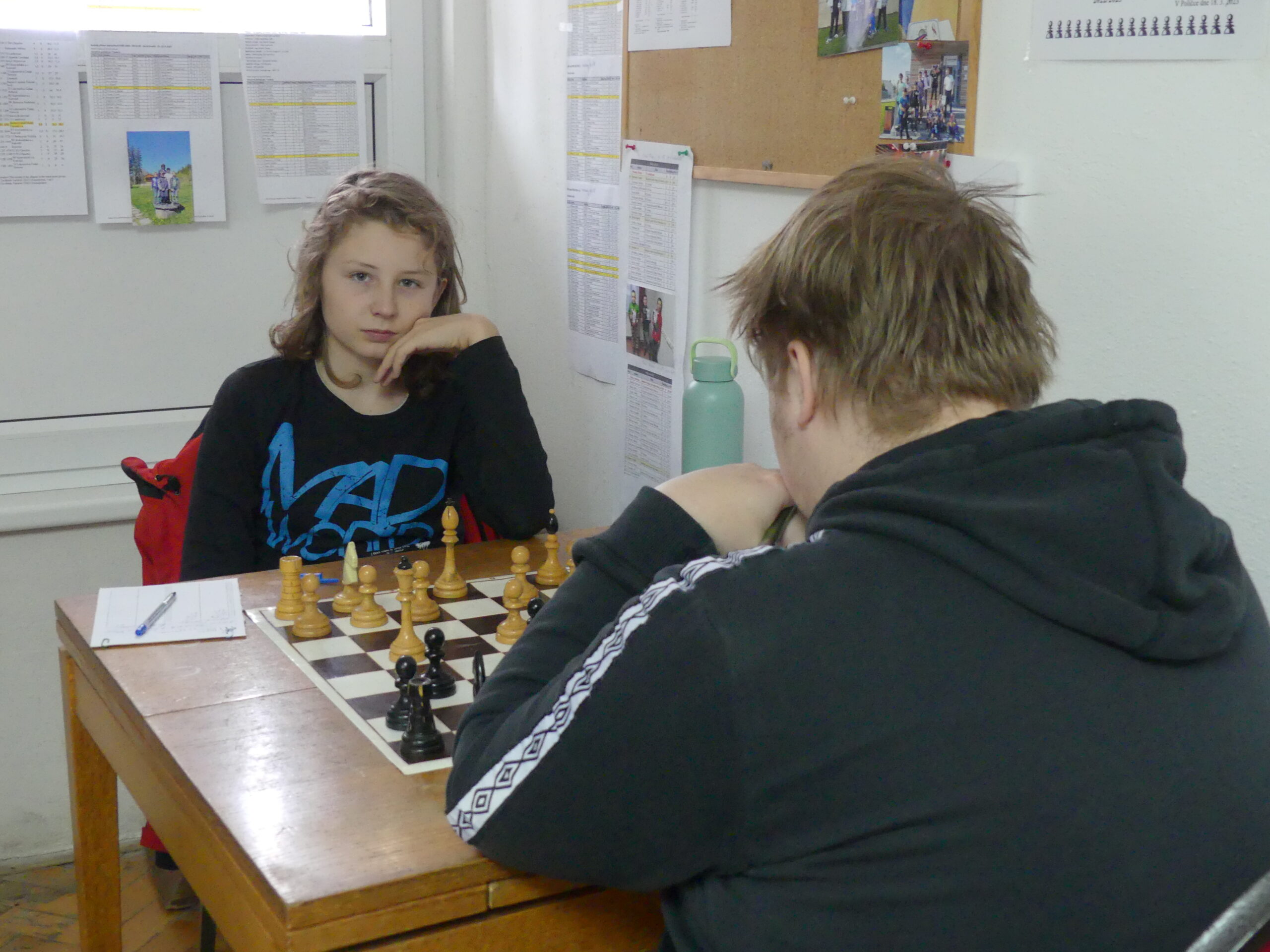 Motl Josef-Dudlová Alexandra R Saša mohla a měla zazářit, zkušeného soupeře v nějaké anglické černými lehkou rukou přehrála. Vyrazila z něj floka a ne jen tak nějakého, nýbrž kryté volné d4. Pak vyměnila, co měla, věžovka byla celkem nesložitě vyhraná. Pan Motl se zkusil vykoupit nabídkou remízy – naše juniorka ode mne slyšela Hrej, které si vyložila jako Dej – a k mému zděšení podala soupeři ruku. Aby v následné analýze opět stejně lehkou rukou prokázala prosazení zmíněného floka do dámy. Vinu beru z části na sebe, příště mám říct slyšitelné ANO/NE. Každopádně pochvala za super výkon s ratingově výrazně silnějším soupeřem, škoda jen, že odměna se nedostavila.