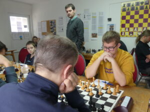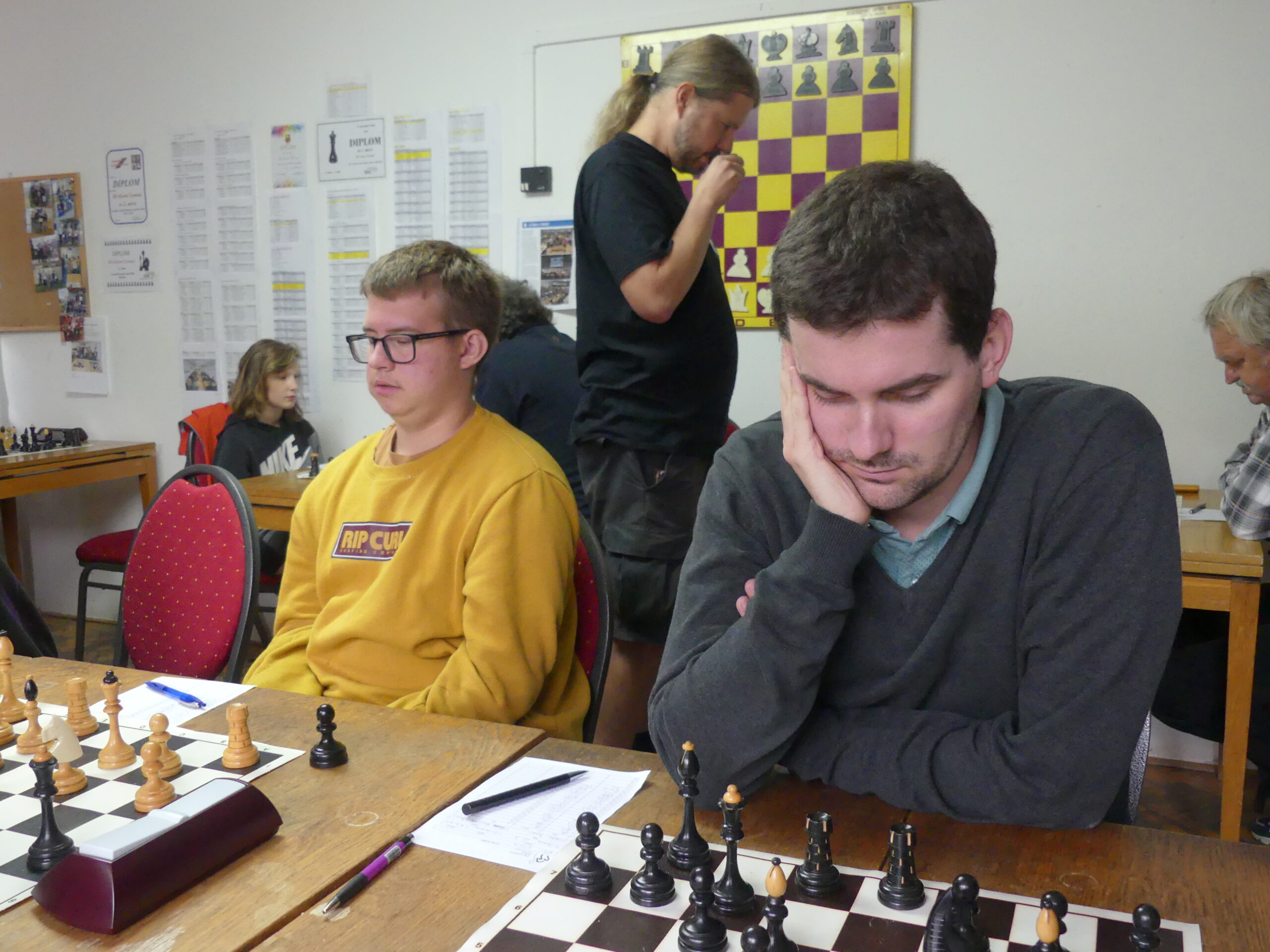 Svoboda Petr-Cimprich Lukáš 1/2 Petrova premiéra za nás byla extrémně zajímavá. Náš kisnař junior totiž narazil na kisnaře ještě úplně jiného levelu, který v sicilce 2. tah Je2 zkoušel vyvracet málem půl hodiny 😀 A pak spal dál, Petr natahal nesložitou šablonu a v jeden moment měl čas lepší asi o hodinu dvacet! Jestli i pozici, nevím, od oka jo, ale černému blicání na minutě nevadilo a bílý ne a ne najít soupeři problém k řešení. Až se mě drobně rozhozený (což chápu) zeptal, jestli může nabídnout remízu. Souhlas, odmakal to poctivě.