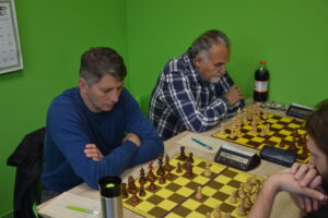 Pořadí dalších partií nevím stoprocentně, ale mohla to být výhra u Vojty, pak u Matěje, remíza u Vítka, který se rozhodl to nehrotit, a kolem kontroly opět výhra u Petra. 6,5:0,5, to už byl pro hosty debakl.