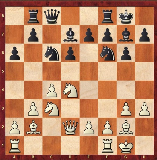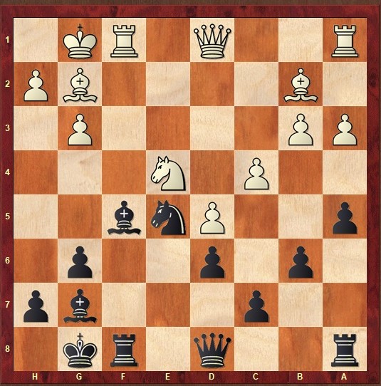 Tady nám taktika vyšla, Majda soupeře černými převálcoval a já ve vhodný moment nabídl z pozice síly půlku ratingově favorizovanému soupeři. Po posledním výjezdu h4 musí černý asi aktivně c5 a kdoví, co by se ještě stalo.