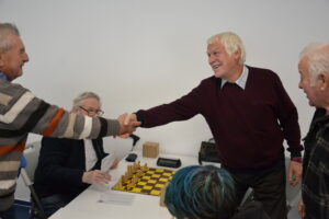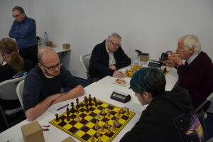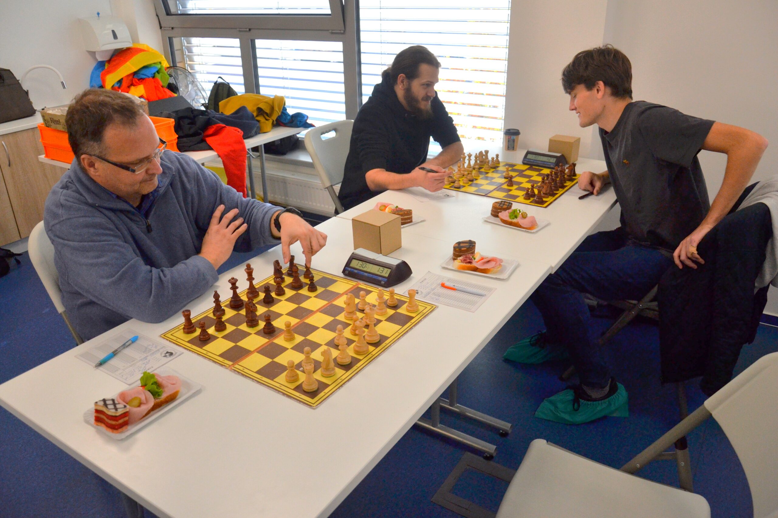 Rychle skončila jediná partie, a to duel Jardy s Honzou Smolou na osmičce, ale taky jim nějakou dobu trvalo, než snědli ten chlebíček a rozloučili se s figurkama. 0,5:0,5