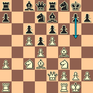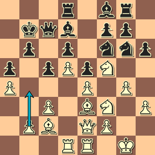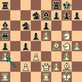 Vzhledem k bílým figurám na královském křídle se Petr neodhodlal k malé rochádě, ale i na velkou bude foukat: 22. b4!