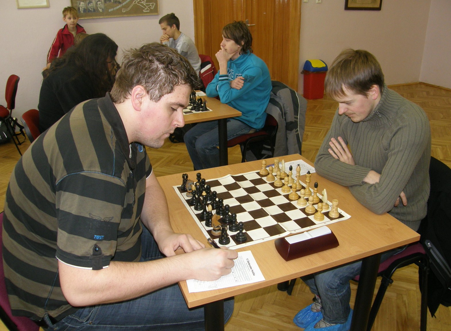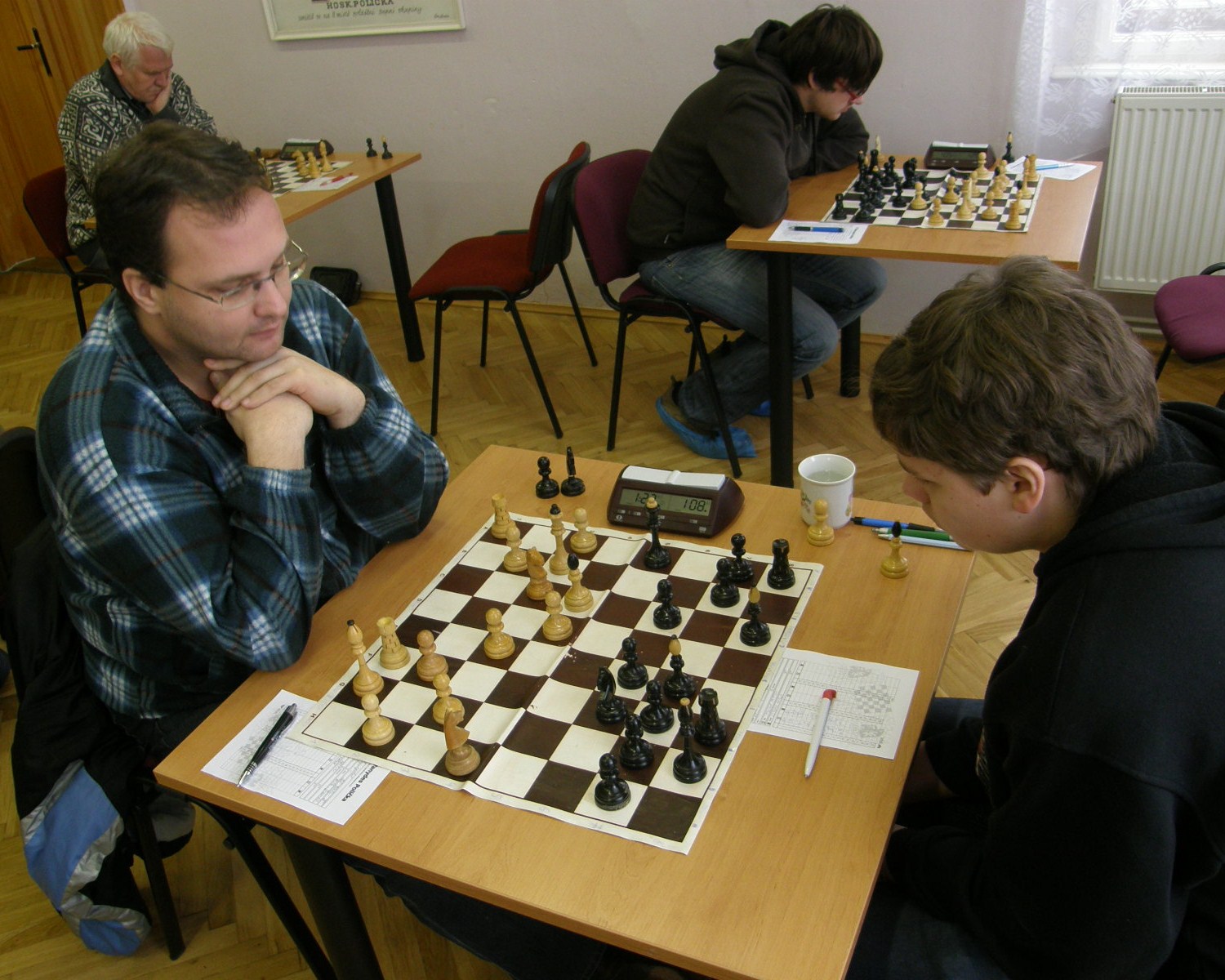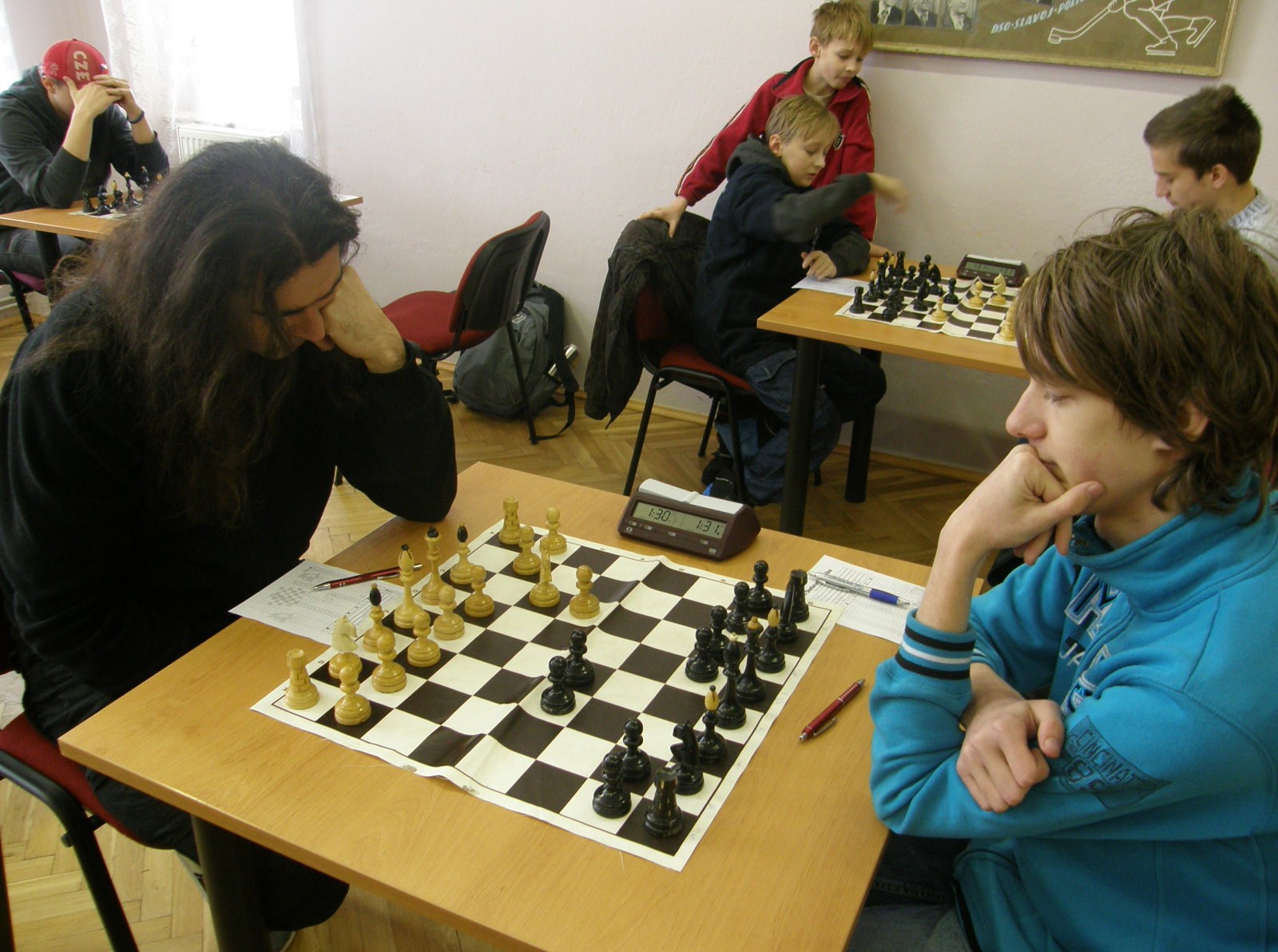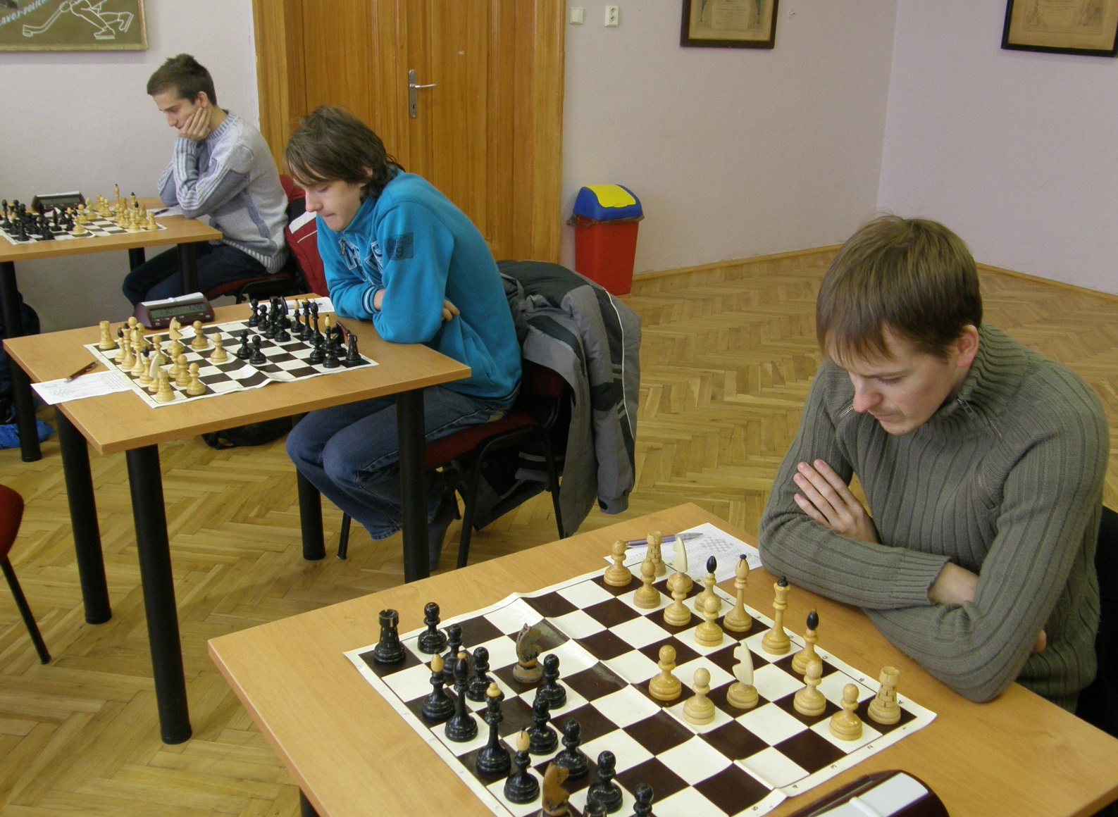 Pozitivem budiž, že jsme k přípravě, jak je naším dobrým zvykem, přistoupili zodpovědně: s Mártym Poslušným jsem se potkal již v pátek na plese v Říčkách :-), abych o den později na druhém bálu v Dolní Čermné zvesela poklábosil s Michalem Mertou ve smyslu: „Do p.dele, dyť sou ráno šachy.“ 😀 Náš lídr Sergej pro změnu tužil ruku na popradském turnaji ve fotbálku, kde ukořistil cenné druhé místo s exšachistou Máčou. Ostatní pochopitelně věnovali víkend studiu jemností teoretických variant, nácviku propočtu a dleli hodiny nad studiovými koncovkami 🙂