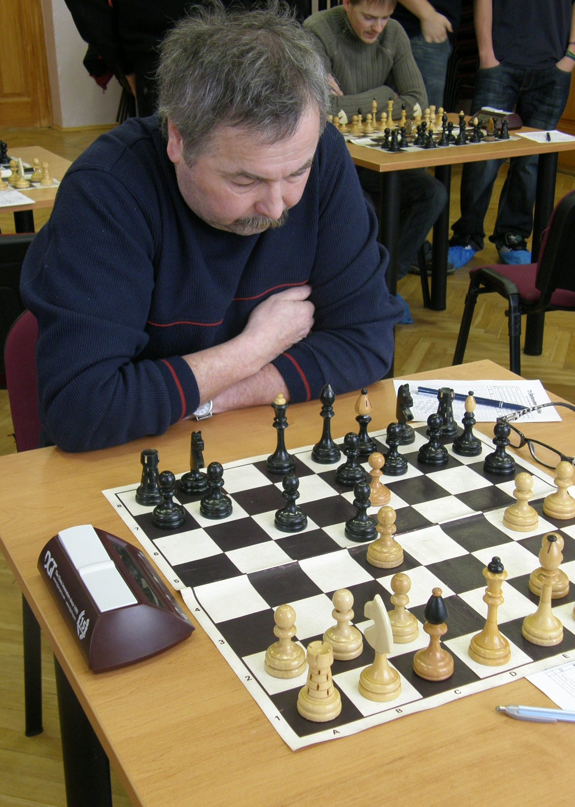 Vedeme tedy už jen 3:2 a rozhodnutého není nic. Dohrávají se tři partie a že bychom někde stáli výrazně lépe, to teda jako ne. Sergej na jedničce usiluje o výhru ve složité koncovce dvou věží a dvou floků navíc proti věži a dvěma střelcům, na dvojce Márty Poslušný brání zdechlou pozici, ale po nepřesnostech soupeře ožívá, a konečně na šestce Péťa Mareš svou pozici spíše vyhoršuje a o remízu se bojíme. Pročež s Pavlem Kylarem v zájmu zachování nervů nabíráme kurz směr pivnice, neboť tamní jedenáctka, utopenec za pětadvacet a servírka též cca pětadvacet vykazují kvality nesporné 🙂 U stolu odhadujeme výsledek něco mezi 4,5 pro nás, v horším vydání obráceně a nejreálněji se nám jeví dělba bodů za plichtu 4:4.