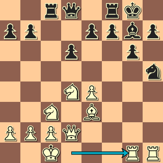 Takže: materiál je sice v rovnováze, ale na černého krále může útočit šest bílých figur, zatímco uplatnění tří černých pěšců v koncovce je úplně nereálné. Černý si zkrátil trápení: 16. … Ve8? 17. Vxh5!! gxh5 18. Dg2 1:0