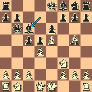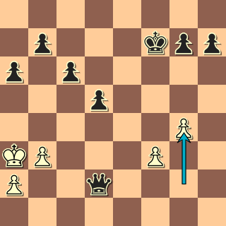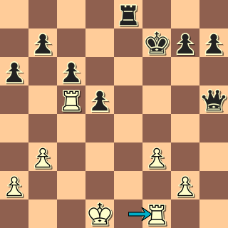 Najdete za černého čtyřtažec? Není nic lehčího, jen úvodníků je hned šest! 38. … b5! 39. b4? (39. g5 c5 nebo a5 s hrozbou Dc1) 39. … Dc3 mat. 0:1