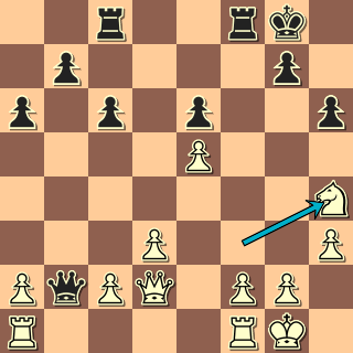 13. … Sg4! Mezitah všechno zachraňuje. 14. f3? Vypadý logicky, ale oslabuje černá pole. Při střelci na c5 nebude mít král ústup! 14. … Jxf3+!!? To už je příliš fantastické. Jednoduché bylo 14. … exf4, dokonce pětitažec pak vznikal po 14. … Dh5+ 15. Kg3 exf4+ 16. Kxf4 Je2+ 17. Dxe2 g5+ 18. Kg3 Dh4#. To Je2+ by asi neviděla, ale Dh5+ a exf4 jsou jednoduché tahy. 15. Jxf3? Bílému se nemůžeme divit, že ho 15. Vxf3!! s udržením partie na pohled nelákalo. 15. … Dh5+ 16. Kg3 exf4+ 17. Kxf4