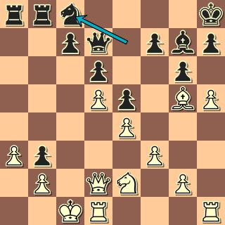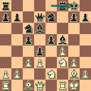 A přece tam byla idea – a krásná … a sám o ní občas básním: útočný ústup 23. De1!! Dáma míří na h sloupec, ale ne na h6, nýbrž na h4 s jednoduchou hrozbou hxg6 a Dxh7 – střelec na g7 tu překáží! V některých variantách se střelec bude měnit ne na h6, ale na f6 (a dáma na f6 je nebezpečná např. kvůli h5-h6). Pokračuje-li černý ve svém plánu 23. … Jb6 24. Dh4, už nejde 24. … Kg8 25. hxg6 hxg6 26. Sf6 s nekrytelnou hrozbou Dh8+! Nutné je 24. … Sf8, ale to už zas může bílý měnit dámy a tlačit na h7 věžemi, střelec na f8 překáží. Nic forsírovaného tam taky není vidět, ale je to nápad.