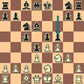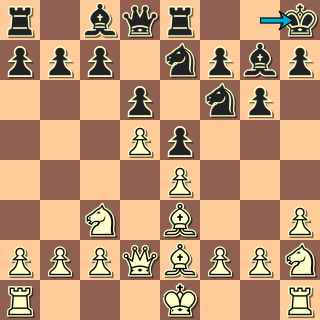 Kdybych chtěl hledat alternativní založení partie, tak asi právě zde: 11. 0-0 s plánem f2-f4. Černý je totiž docela stísněn, kdežto já jsem v zásadě vyvinut a figurky by mohly nastoupit rychleji než v partii. 11. … Sd7 12. Sg4?! Snaha o strategicky správnou výměnu v pozici, kde má jít o rychlost: 12. g4, h4 atd. 12. … b5! A už se mi moje velká rocháda přestávala líbit. Tyhle oboustranné rochádové útoky připomínají jízdu v ledovém korytě: děláte ty téměř jediné tahy, jedete předurčenou dráhou, ať už brzdíte nebo ne, a jen čekáte, kde vás to vyplivne. Nás to vyplivlo tady: