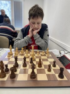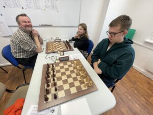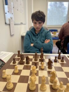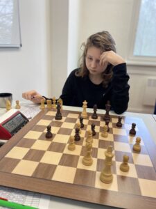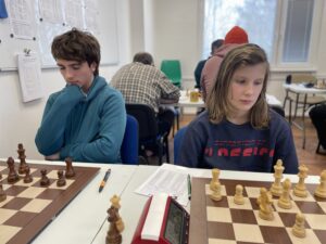 - Kobr – Vaníček 1/2 Tady průběh taky odpovídal mým prognózám. Matěj pomalinku vpřed, z DG jako už kolik partií. Honza se zabednil, ovšem něco přehlédl, najednou byl bez figury a pozice musela být řachlá. Jenže náš borec bohužel dopadl jak já dva roky zpátky – připustil protihru, výhry najednou nebylo.