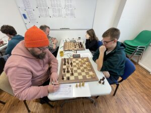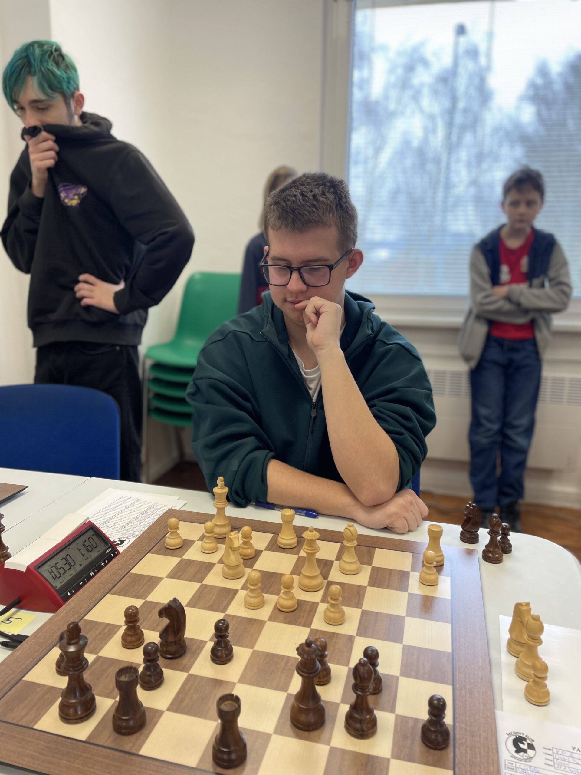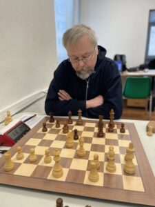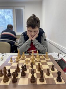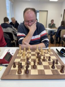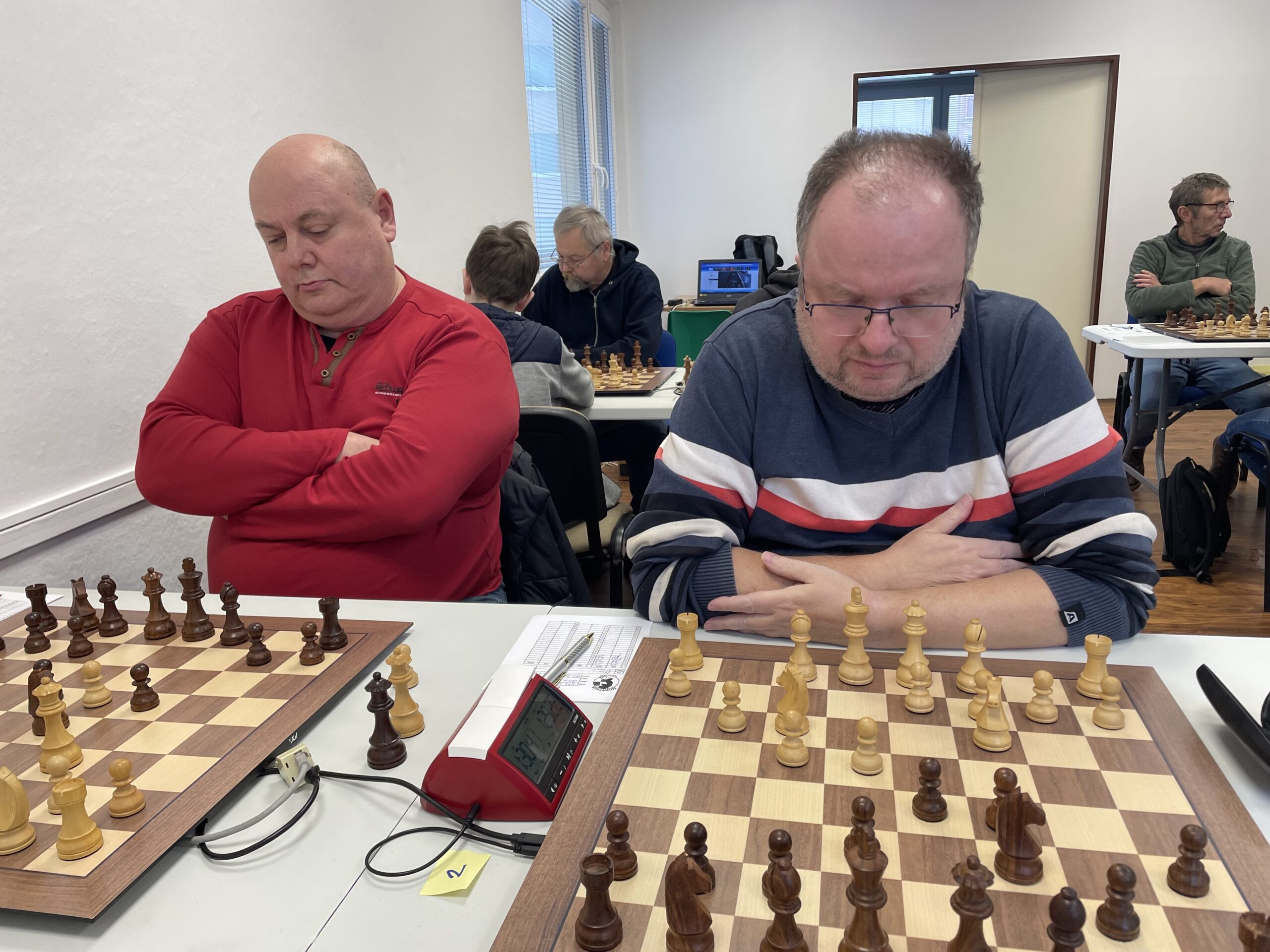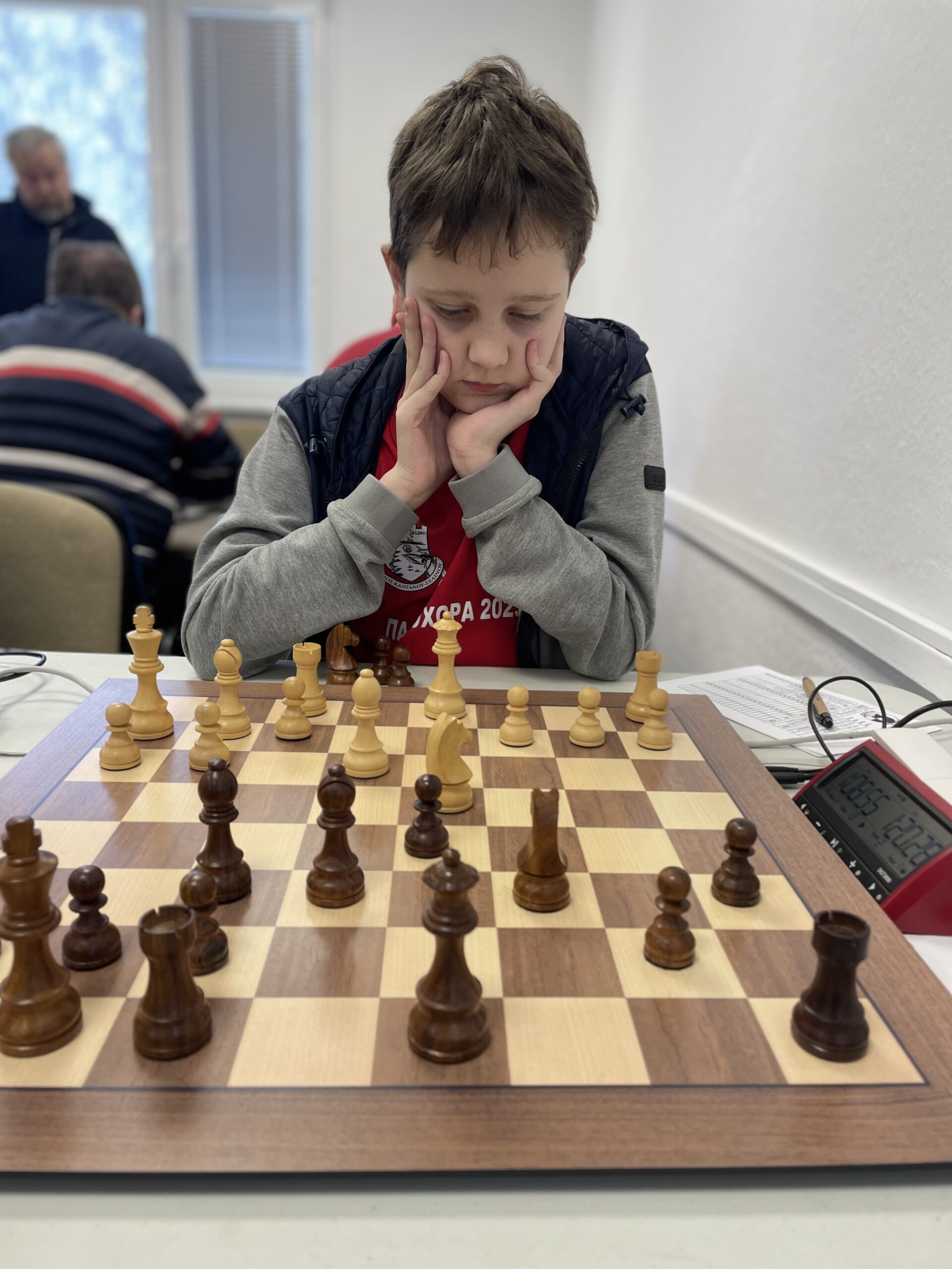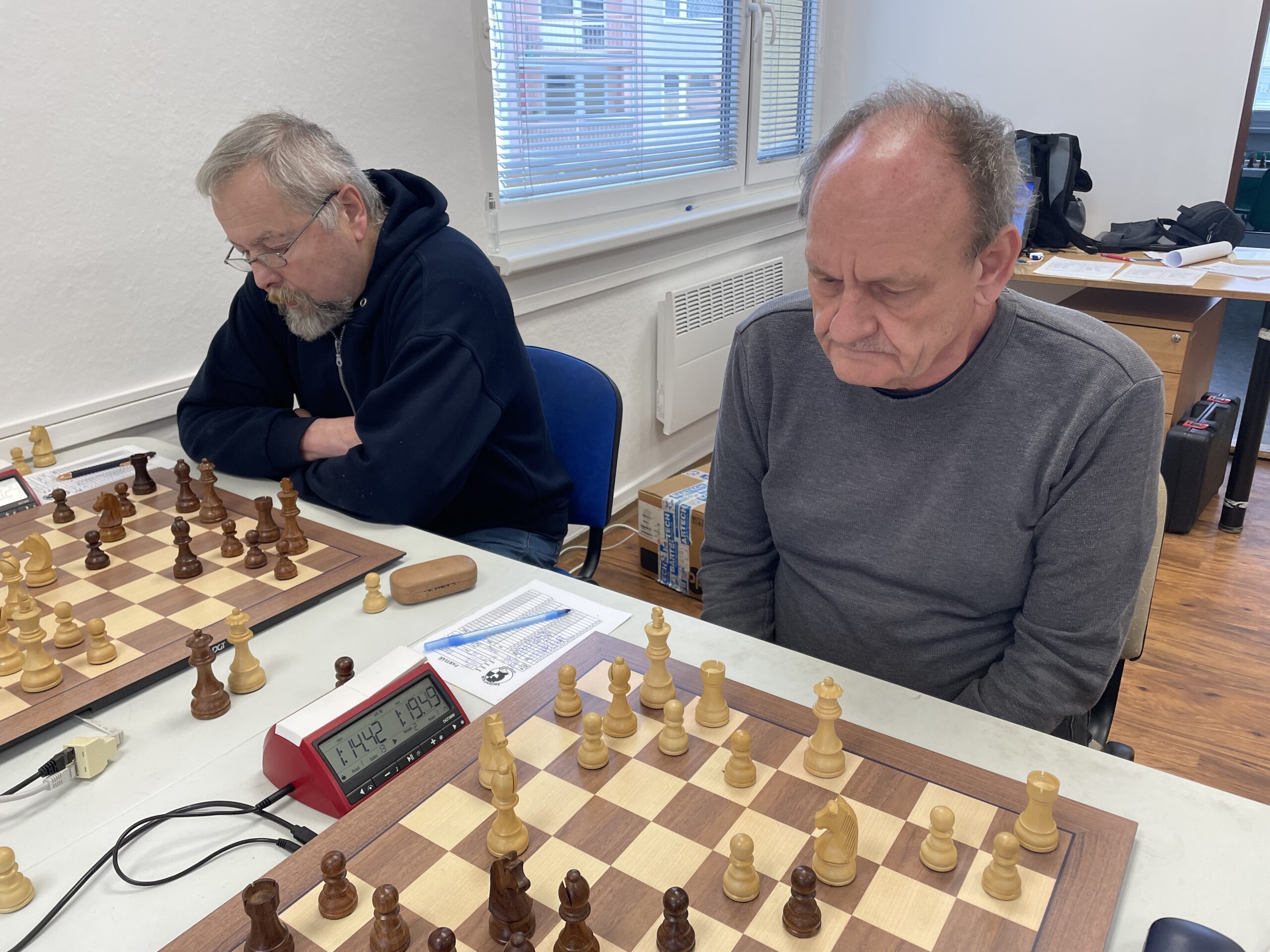 Přivítání, Martin Šmajzr nahodil onlajny a jdeme na věc! Zápas od gongu bojovný, první to zkusil zapůlit až Pavel Kylar před polednem, ale náš junior chtěl hrát. Na první desce nahradil rozpaky optimismus, můj soupeř dovedně vymýšlel. Na třetí určitě nejsme horší, na čtvrté hoříme míň než obvykle. Matěj pomalinku zesiluje, Marian hurá útok odráží a směřuje do vyhrané koncovky. Saša hraje oboustranně prapodivnou partii na aktivitu a Skubík v klidu postavil zavřenou Francii.