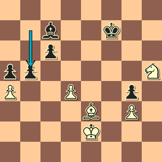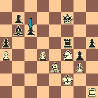 Tonoucí se stébla chytá. Aktivizace střelce je jedinou cestou k protihře, ale po Vh1-b1xb7+ je to protihra hodně zoufalá. Ale bílý dal jen 46. Ke2? Sc7 47. Vxh5? Vxh5 48. Jxh5 a redukovaný materiál dává šance na remízu, žertovali jsme, jestli umí Jirka matit koněm a střelcem ;-). 48. … b5