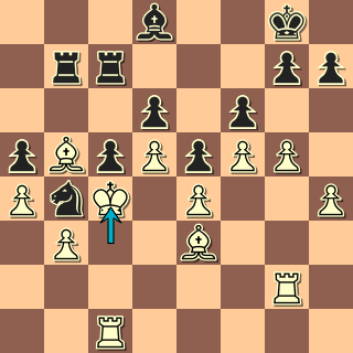 Tady jsem k tomu přišel a říkal jsem si, jak hezky Martin stojí, než mi došlo, že je bez figury. Začíná tedy fáze mlžení, která se poněkud protáhne. Nejprve černý superostře natahal pěšce na královském křídle (h5, f4, g5), což však vedlo jen k výměně dam a ztrátě pěšce. Pak se pokusil (již v koncovce) prostě pozici blokovat a držet, což nemohlo stačit, motor na mnoha místech ukazuje +3 pro bílého.