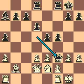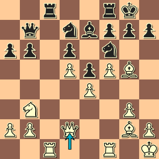 Po zahájení nemá Martin problémy, plán hry spojený s postupem f7-f5(-f4) je zřejmý. Nejdřív se ale musí vypořádat s hrozbou b4-b5, kterou ke své škodě ignoroval. 14. … f5? 15. b5 Sxd5!? Radši dává figuru a bude mít aktivní hru, po 15. … Jb8 16. Dxa5 toho na dámském křídle viselo moc najednou. 16. Sxd5+ Jxd5 17. bxc6 Dxc6 18. cxd5 Dxd5 19. 0-0 Df3