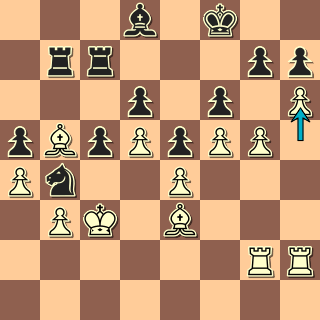 Bílý má jasný plán dalšího nástupu na královském křídle, černý s figurama nic lepšího nevymyslí, zbývá čekat, až se to na něj otevře: 51. … Kf8 52. Vh1 Kg8 53. Kc3 Kf8 54. Vhh2 Kg8 55. h5 Kf8 56.h6