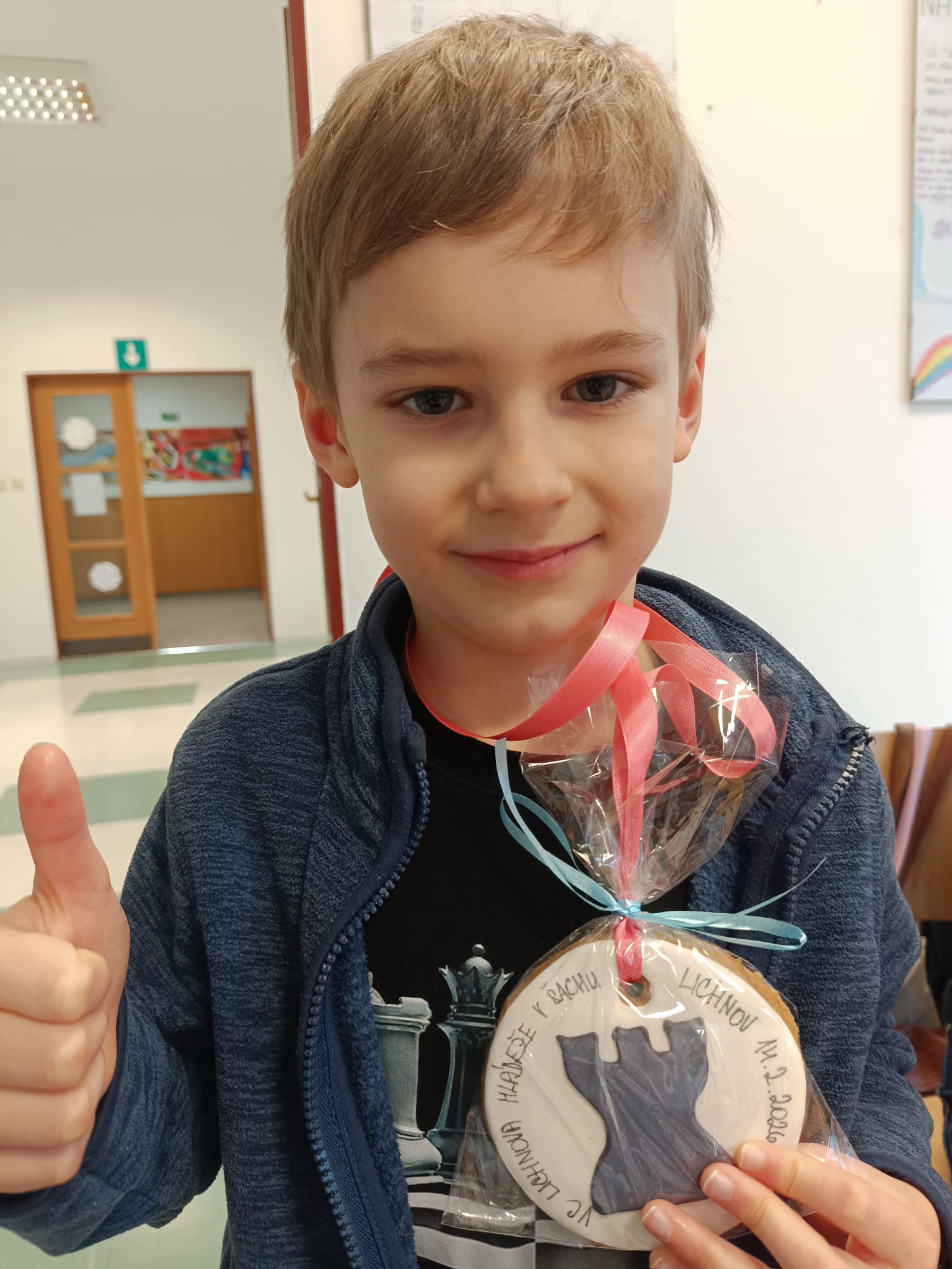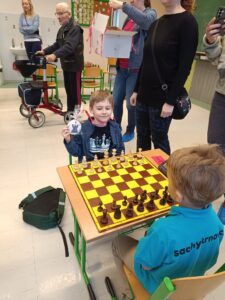 V pátek odpoledne padlo rozhodnutí. Jede se! Pavlík nadšený. Konečně si zahraje šachy s někým jiným než s tátou (který  to moc neumí). Prostory lichnovské školy byly skvělé. Organizace skvělá. Prostory pro doprovod super. Super bylo i to, že byl Pavel zařazen do své kategorie ročník 2018 a mladší, protože doposud byl zvyklý hrát jako šestiletý s o hodně staršími dětmi. První kolo začal hrát u stolu č. 1 s viditelně menším hráčem, kterého porazil celkem rychle. 2. a 3. kolo dostal silnější soupeře, kde musel vynaložit už větší úsilí, ale díky své soustředěnosti vyhrál. Během 4. partie se u Pavlíka trochu projevila rozpustilost, kdy si snad myslel, že je neporazitelný, a přestal dávat pozor. Porážka ho trochu usadila na zem a vrátila do vážné hry. Nakonec získal 6 bodů ze 7 a bral první místo.