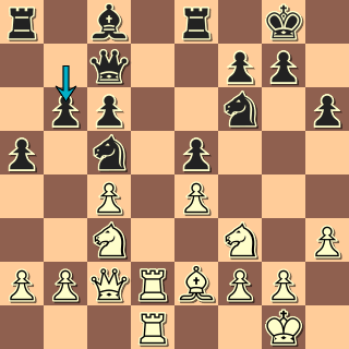 25. Jc4!=?? Ano, přesně tak. Bílý učinil vyhrávající tah, aniž by o tom věděl, a nabídl remízu. Je pravda, že na první pohled není výhra tak očividná. Jde o to, že černý ztratí jezdce g4, pokud totiž dobere střelce zpět, dostane se mu bílý na krále. Např. 25. … Dc3 26. Sxg4 fxg4 27. Vxf8+ Kxf8 28. Vf1+ Sf7 29. Jd6 nebo 26. … Sf7 (střelec na g4 počká) 27. Jd6 fxg4 28. Jxf7 Vxf7