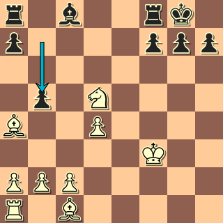 4. … Sxd5! Pěkný příklad transformace převahy. Místo dvojice střelců bude mít černý výhodnou koncovku S x J, pěšáka d5 bílý neudrží. (4. … cxb3 by bylo jen přehození tahů.) 5. exd5 cxb3 6. cxb3 Kf7 7. Je1 Ke7 8. Jc2 Kd6 9. b4 axb4 10. Jxb4 Sa3 11. Jc2 Sc5+ 12. Kf1 Kxd5