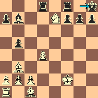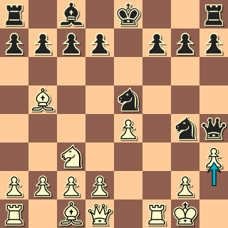 Partie tady hned skončila, černého ani nabízený jezdec na a5 neodvrátil od připravovaného matu: 1. … Sxf3 2. gxf3 Dh2+ 3. Kf1 Dh1 mat. 0:1