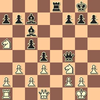 Závěr partie je jednoduchý, ale hlavně si všimněte, jak to černý hezky postavil. Pěšci v centru zaručují prostorovou převahu. Dvojice střelců pálí na královské křídlo. Jediný volný sloupec má věž, dáma stojí aktivně a nedá se vyhnat. Shrnuto: každá černá figura stojí líp než její bílý protějšek.