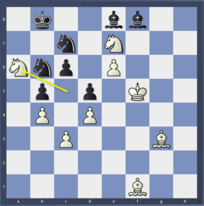 Pár tahů později to však chtělo přesný propočet. Strategické uhnutí králem se bohužel prokázalo jako přehlédnutí a král se stal obětí šikany. Věčná škoda, partie to vůbec nebyla marná! 0-1