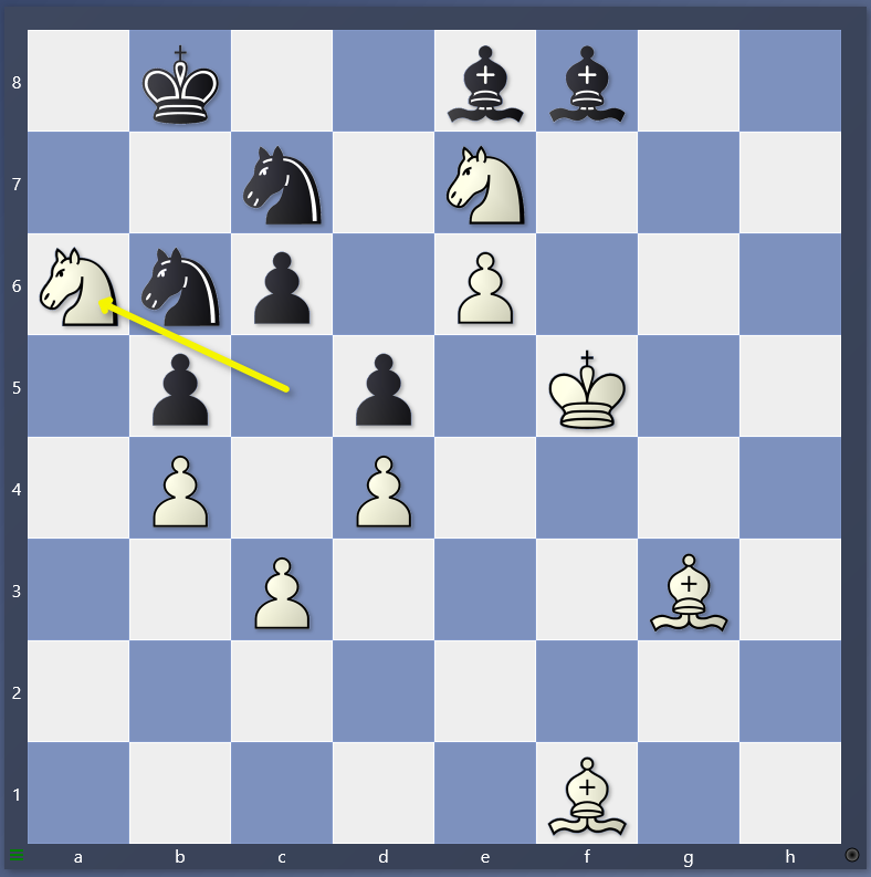 Já jsem si zbaběle dal věčňák a spokojil se s remízou. To je tak, když spočítáte lajnu už kdesi od toho 32. tahu a pak jen rutinně kontrolujete, jestli to pořád ještě bude vycházet… Věčná škoda. ½